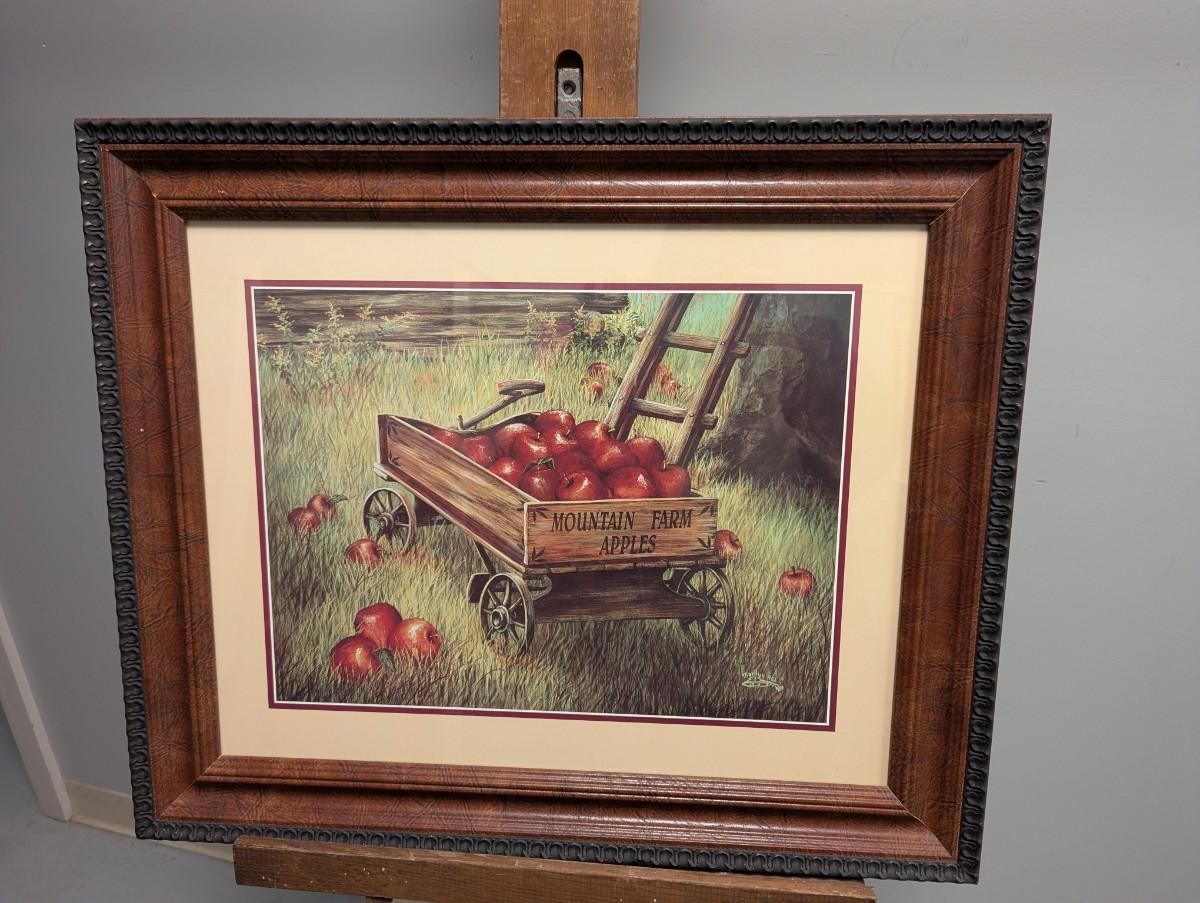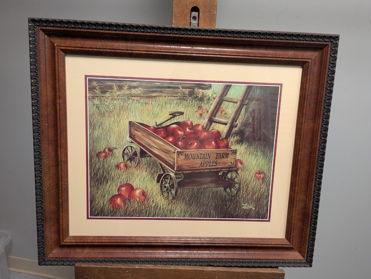 Signed 24" x 20 1/2" Marilyn Rea Print Mountain Farm Apples Wagon At Harvest Time