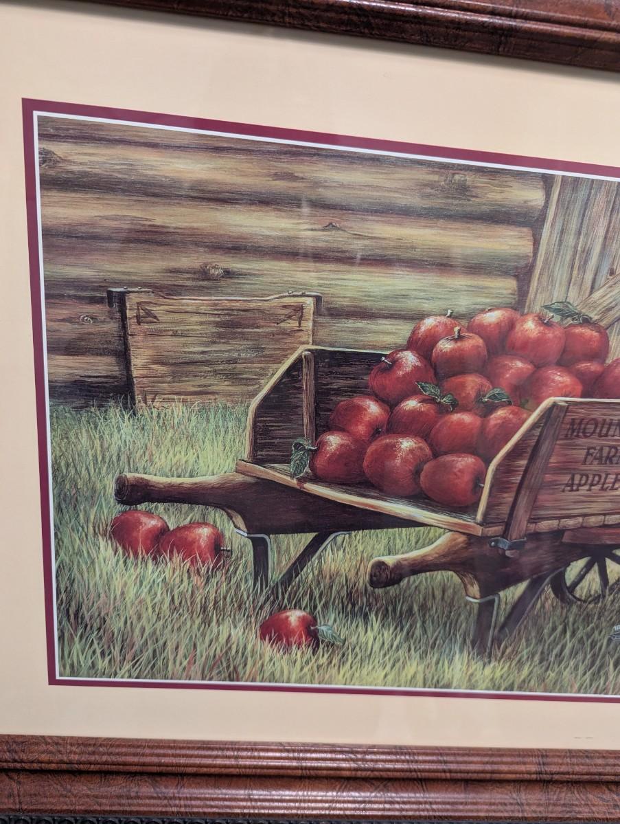 24" x 20 1/2" Marilyn Rea Mountain Farm Apples Wheel Barrow Harvest Time Print