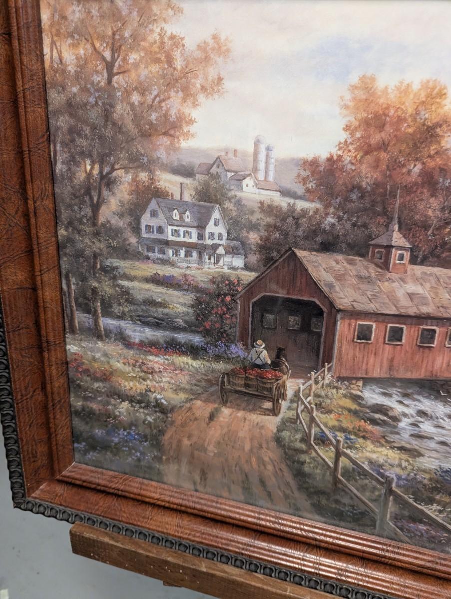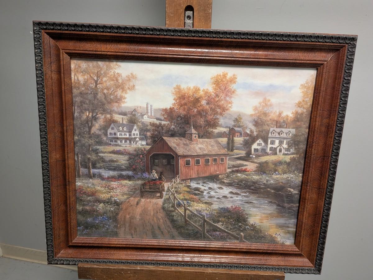 24" x 20 1/2" Wagon & Covered Bridge Art