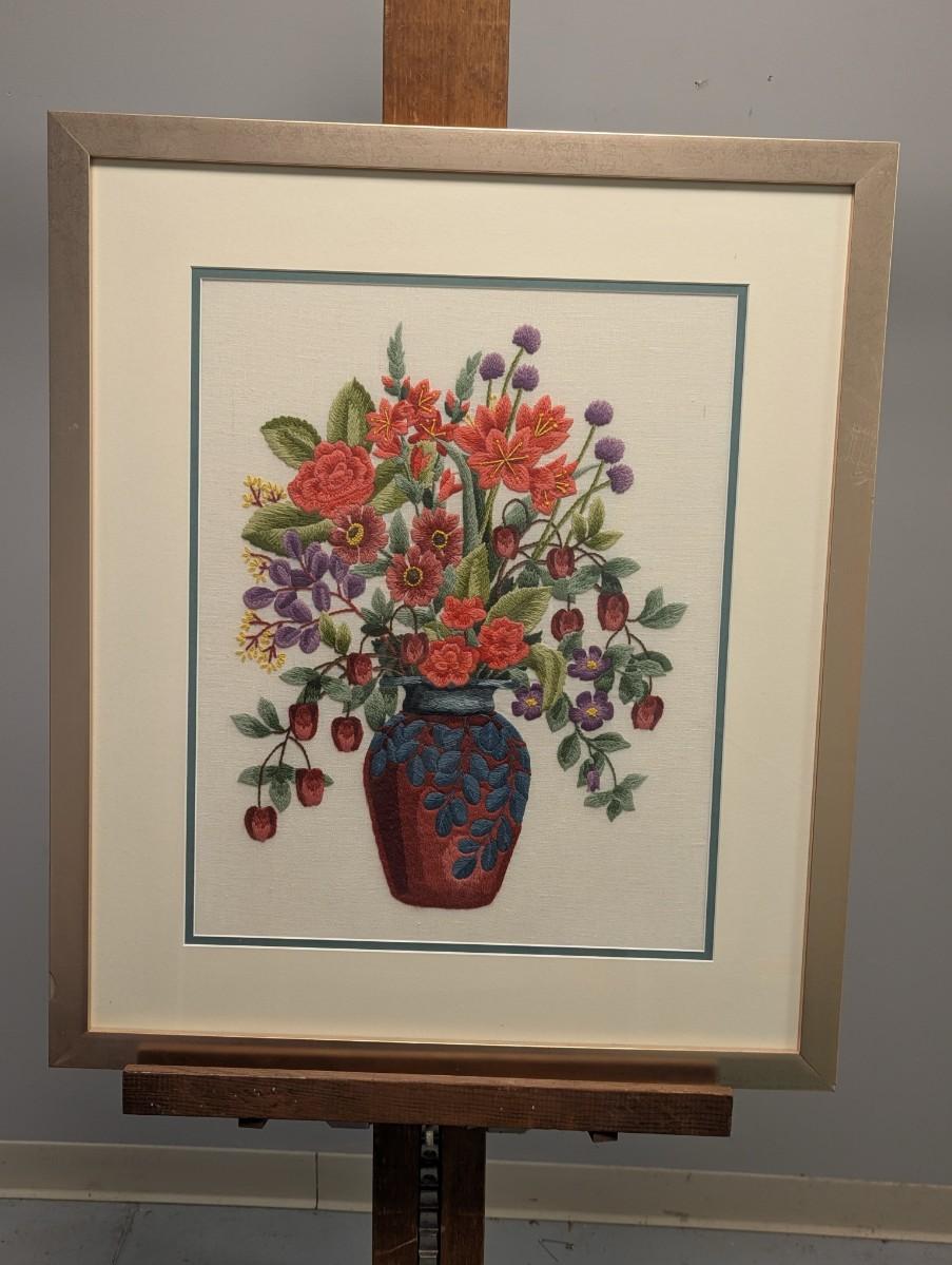 24" x 28" Cross Stitch Flower Bouquet Framed Art
