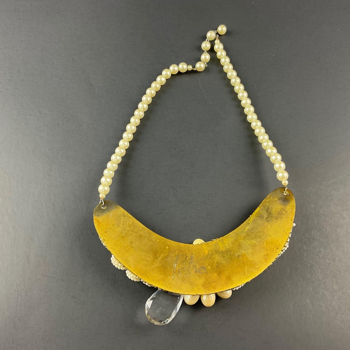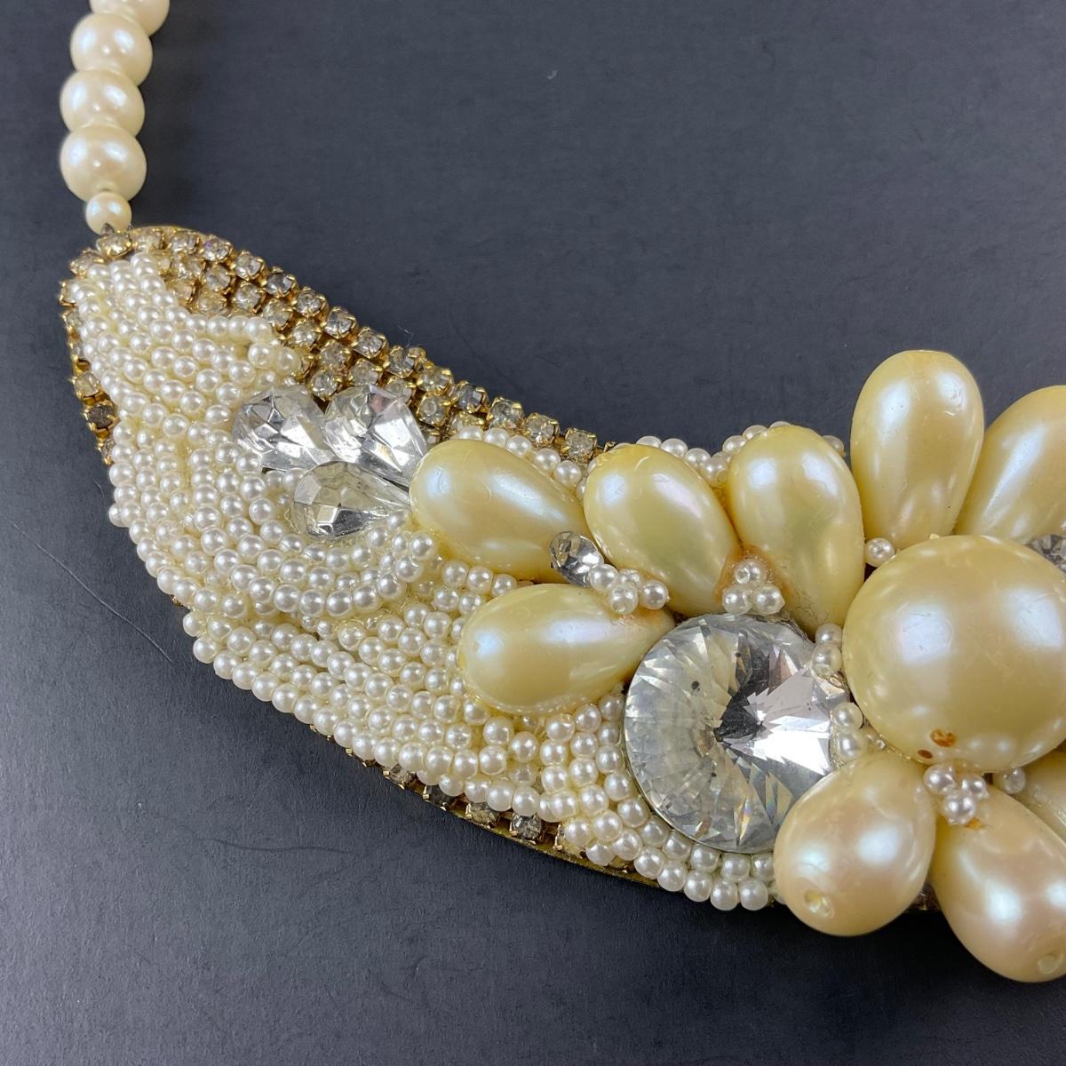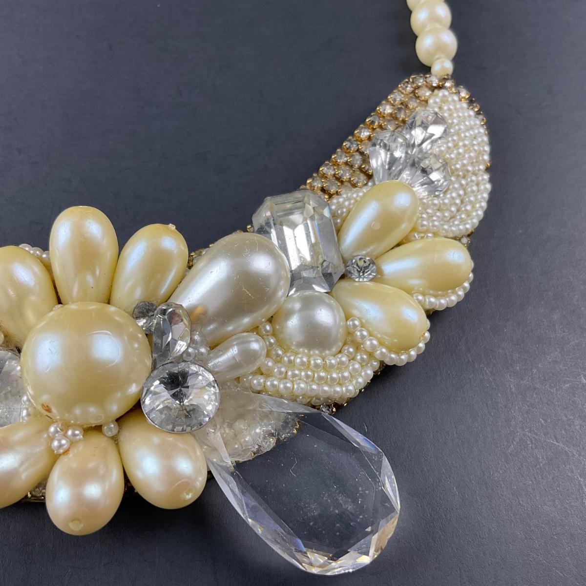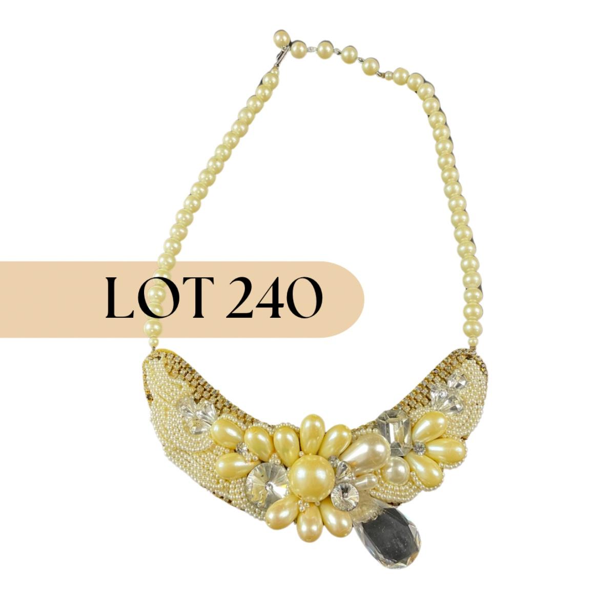 One handmade artisan beaded and believed to be faux pearl necklace collar, with brass backing and signed Petra on the back. This piece does have some scuffs, scratches, marks, or slight damage, but otherwise appears to be in great shape. Please see photos for details and condition. Any condition statement is given as a courtesy to a client, is an opinion, and should not be treated as a statement of fact. Reference to condition written, oral or within a condition report shall not be regarded as a full account of condition and may not include all defects, alterations, or restorations. Absence of a condition report does not imply a lot is flawless or lacking imperfections or damage. Katherine’s Auction & Appraisal Service shall have no responsibility for any error or omission. Returns shall not be accepted on the basis of condition. ::: Shipping is available on this lot. If you require shipping you must let us know at the close of the auction. We will coordinate with you after the item has been won. Shipping fees will include insurance up to or exceeding the value of all items being mailed. If you have any questions regarding this lot please contact the auctioneer either via this website, by direct email or by phone. PICK UP TIMES and other important information can be found in the TERMS and DESCRIPTION of the auction. Please take a look for pertinent information. Thanks!