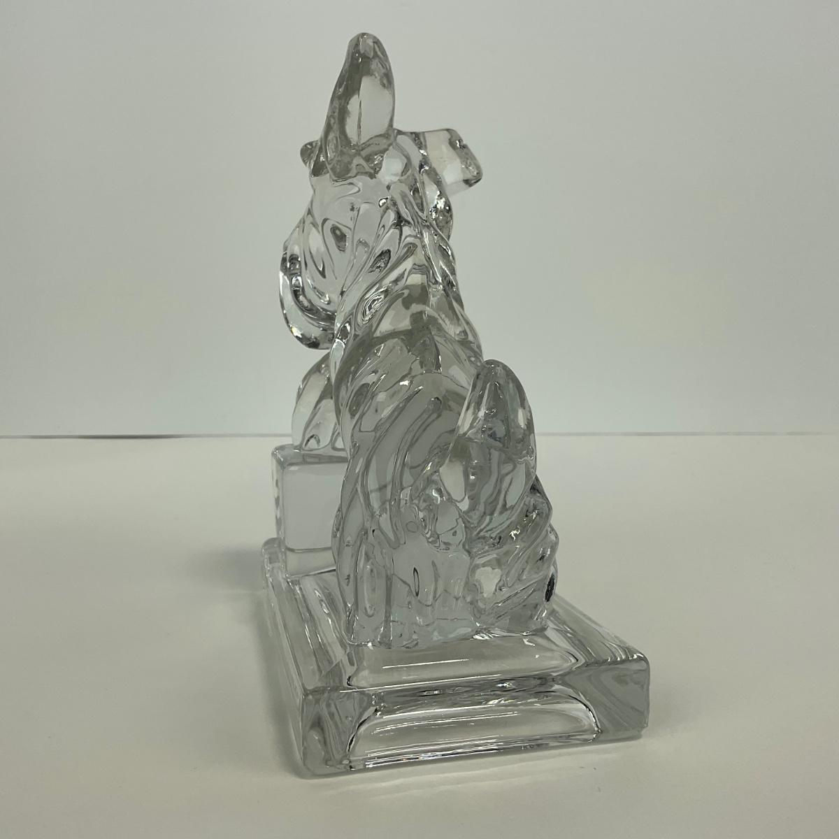 One clear glass Mosser Scotty dog figure. This piece has no damage, and appears to be in great shape with no visable chips, cracks, or broken pieces. Please see photos for details and condition. Any condition statement is given as a courtesy to a client, is an opinion, and should not be treated as a statement of fact. Reference to condition written, oral or within a condition report shall not be regarded as a full account of condition and may not include all defects, alterations, or restorations. Absence of a condition report does not imply a lot is flawless or lacking imperfections or damage. Katherine’s Auction & Appraisal Service shall have no responsibility for any error or omission. Returns shall not be accepted on the basis of condition. ::: Shipping is available on this lot. If you require shipping you must let us know at the close of the auction. We will coordinate with you after the item has been won. Shipping fees will include insurance up to or exceeding the value of all items being mailed. If you have any questions regarding this lot please contact the auctioneer either via this website, by direct email or by phone. PICK UP TIMES and other important information can be found in the TERMS and DESCRIPTION of the auction. Please take a look for pertinent information. Thanks!