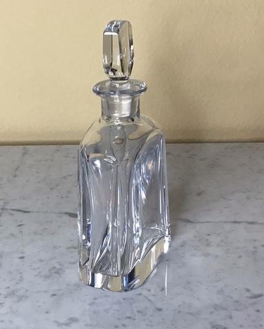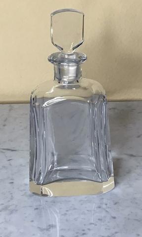 This decanter is 5" wide x 3" deep and stands 10" tall.