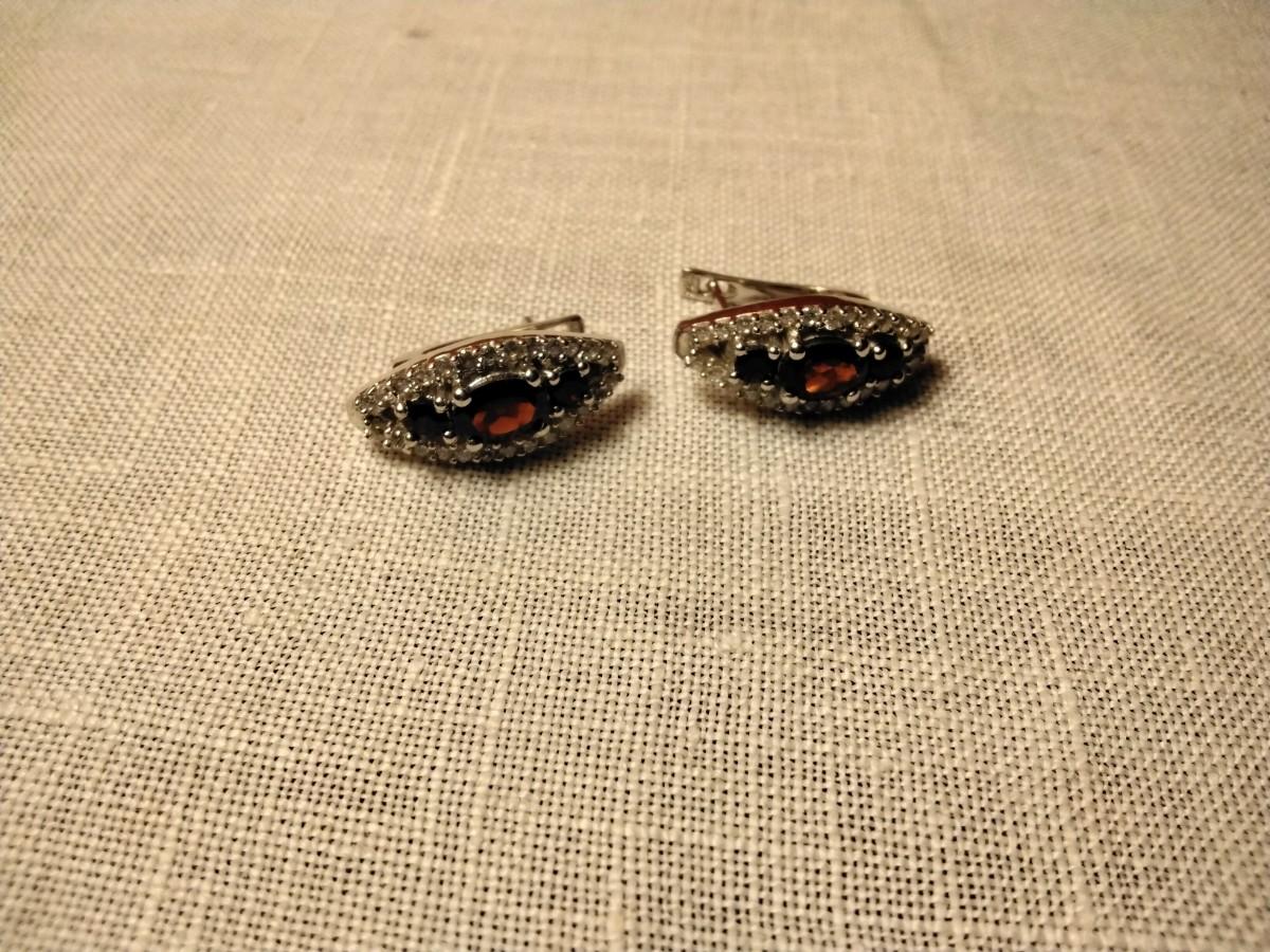 2.40ctw Garnet & White Sapphire 925 Silver Earrings