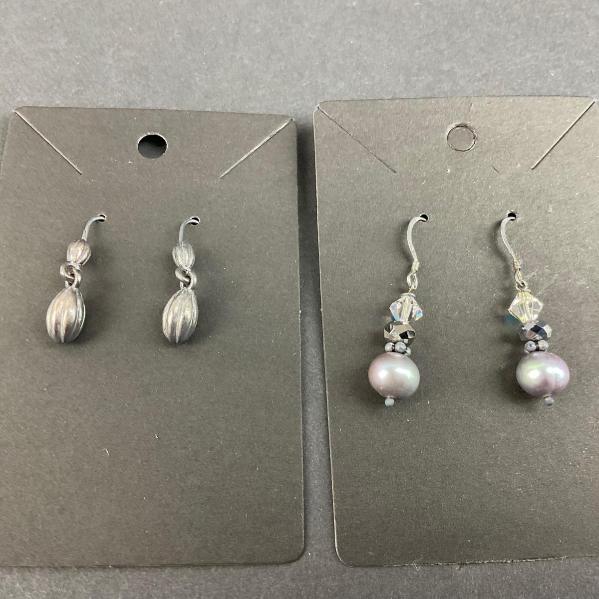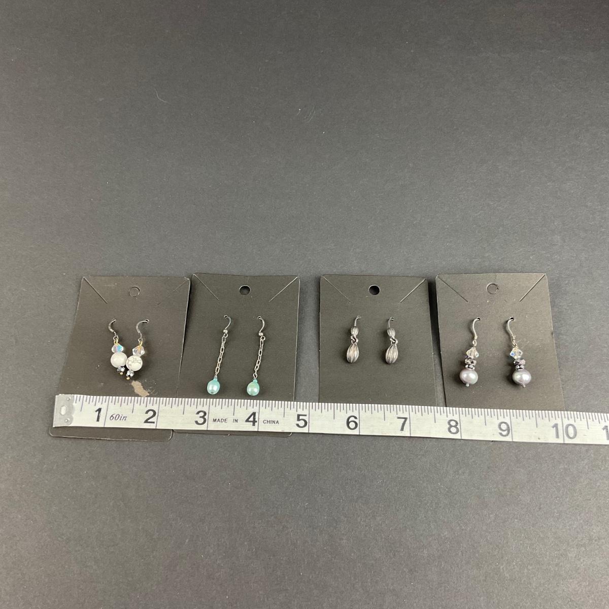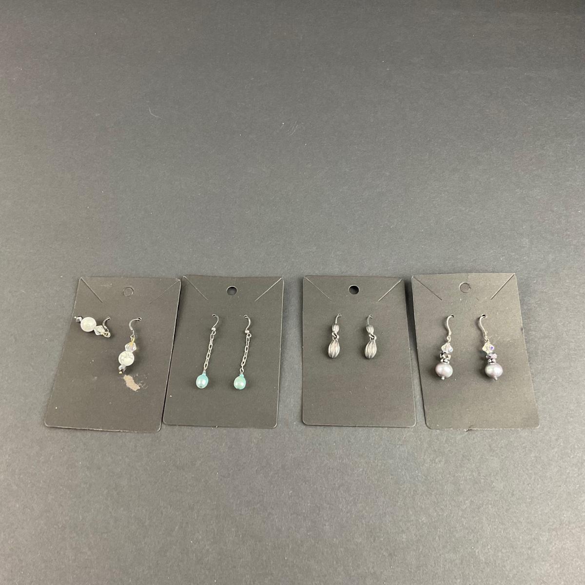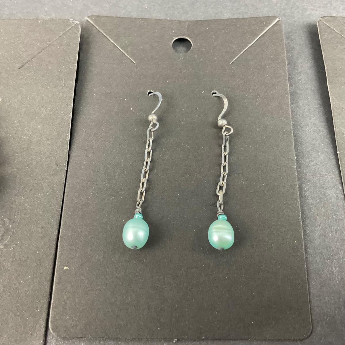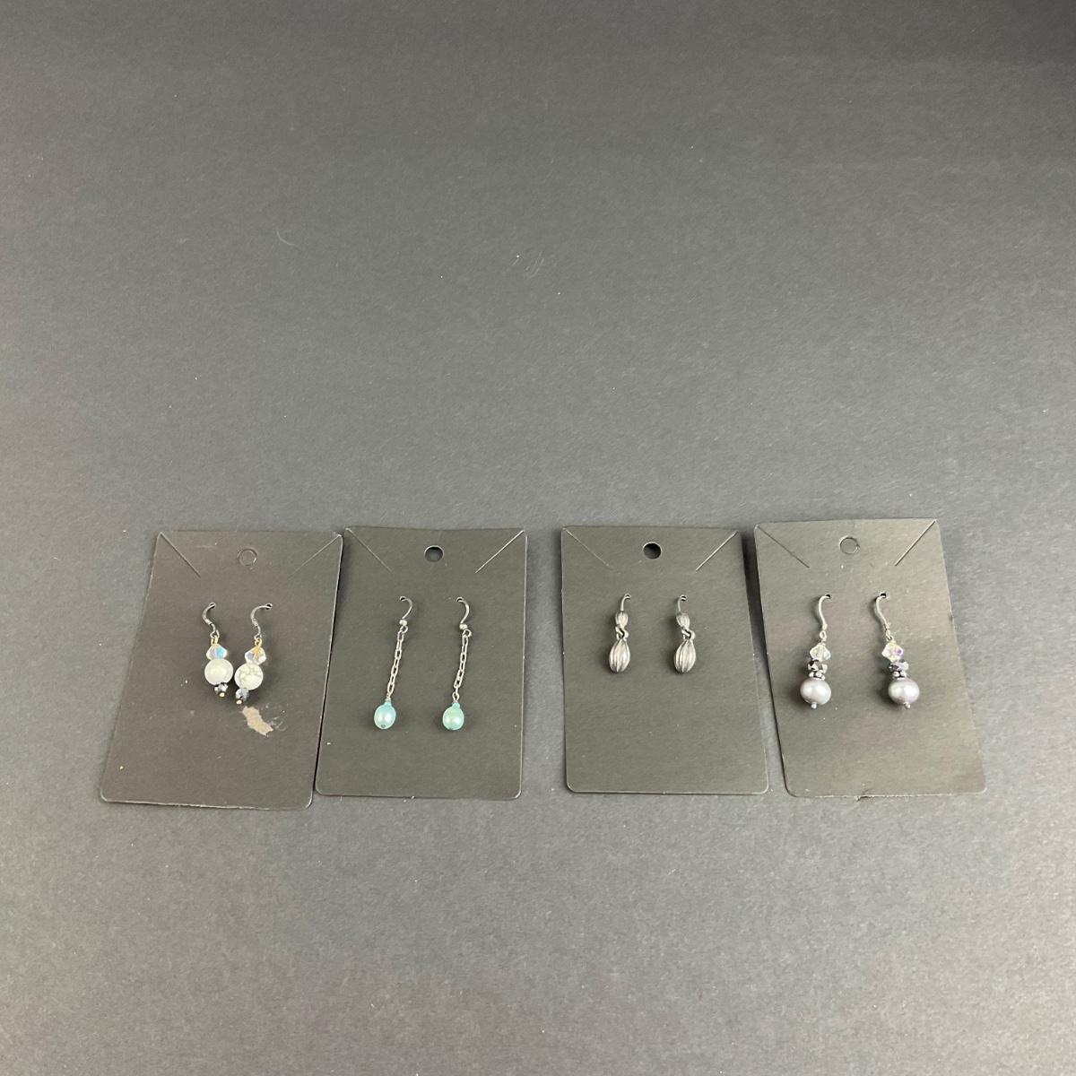 Four pair of assorted beaded earrings. Please see photos for details and condition. Any condition statement is given as a courtesy to a client, is an opinion, and should not be treated as a statement of fact. Reference to condition written, oral or within a condition report shall not be regarded as a full account of condition and may not include all defects, alterations, or restorations. Absence of a condition report does not imply a lot is flawless or lacking imperfections or damage. Katherine’s Auction & Appraisal Service shall have no responsibility for any error or omission. Returns shall not be accepted on the basis of condition. ::: Shipping is available on this lot. If you require shipping you must let us know at the close of the auction. We will coordinate with you after the item has been won. Shipping fees will include insurance up to or exceeding the value of all items being mailed. If you have any questions regarding this lot please contact the auctioneer either via this website, by direct email or by phone. PICK UP TIMES and other important information can be found in the TERMS and DESCRIPTION of the auction. Please take a look for pertinent information. Thanks!