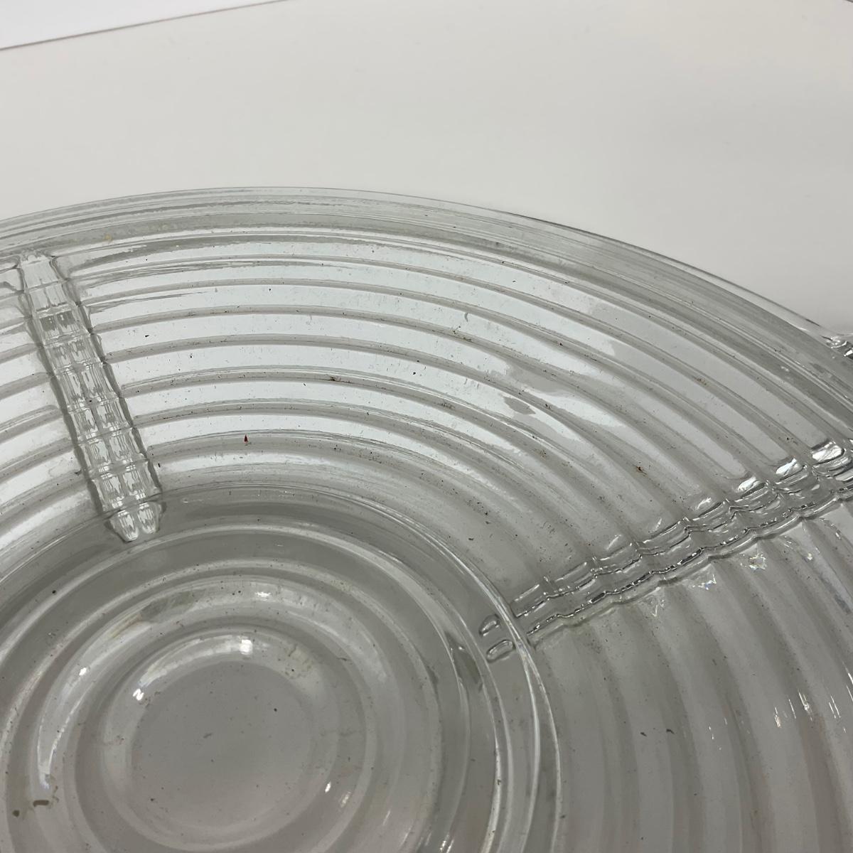 One Manhattan Anchor Hocking Glass Co. (1939-1941) divided tray. This piece is worn and has some damage. Please see photos for details and condition. ::: Shipping is available on this lot. If you require shipping you must let us know at the close of the auction. We will coordinate with you after the item has been won. Shipping fees will include insurance up to or exceeding the value of all items being mailed. If you have any questions regarding this lot please contact the auctioneer either via this website, by direct email or by phone. PICK UP TIMES and other important information can be found in the TERMS and DESCRIPTION of the auction. Please take a look for pertinent information. Thanks!