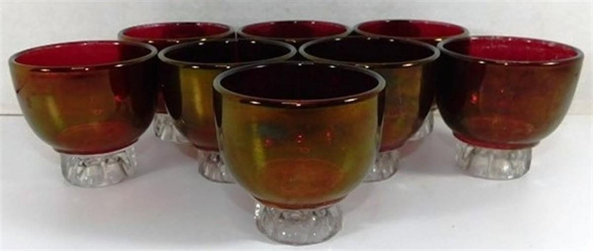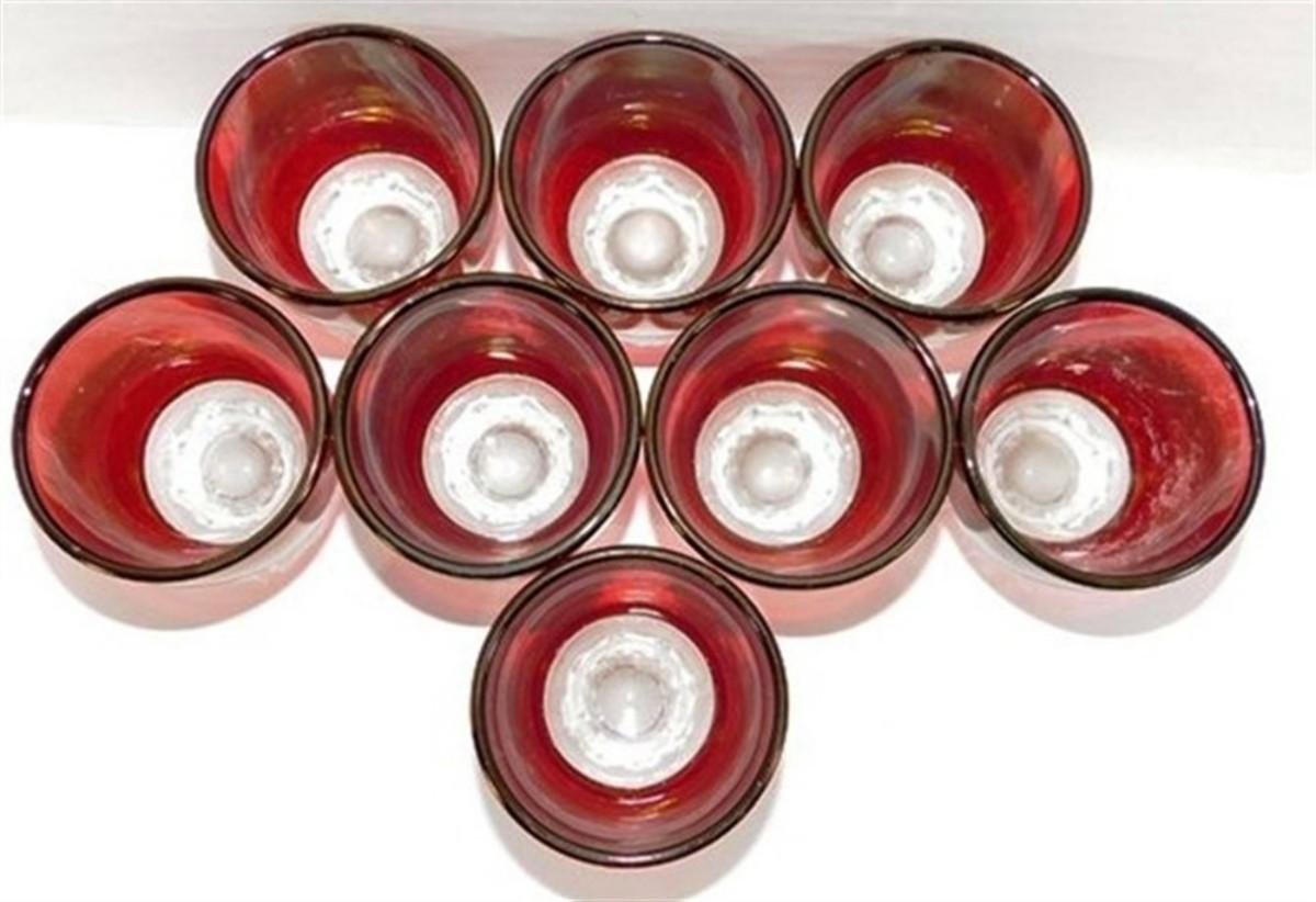 241 Lot of 8 Small Ruby Red Flash Footed Glasses With Golden Hue 2 1/2 x 2 1/2