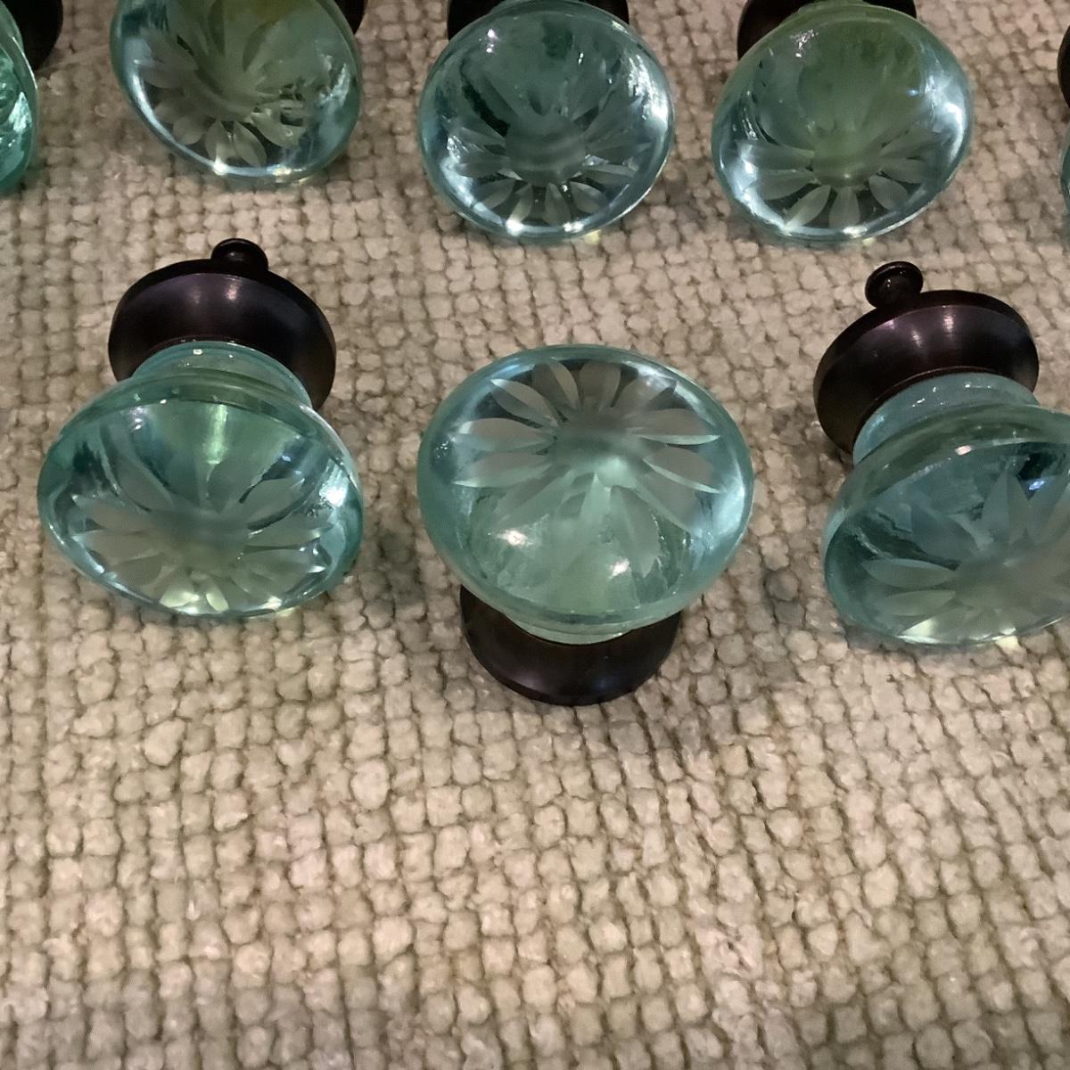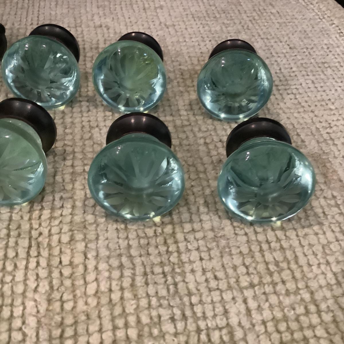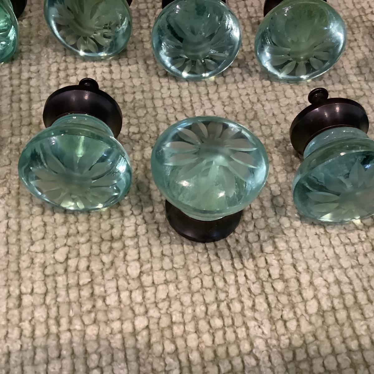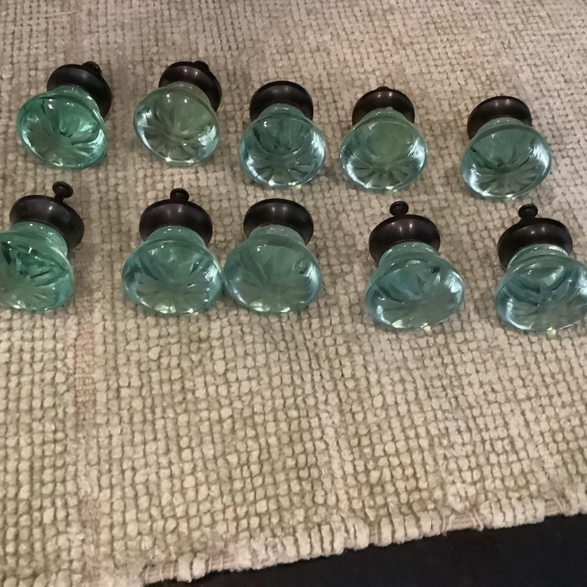 241 Set of 10 Seaglass Green Knobs/Pulls with Floral Etching