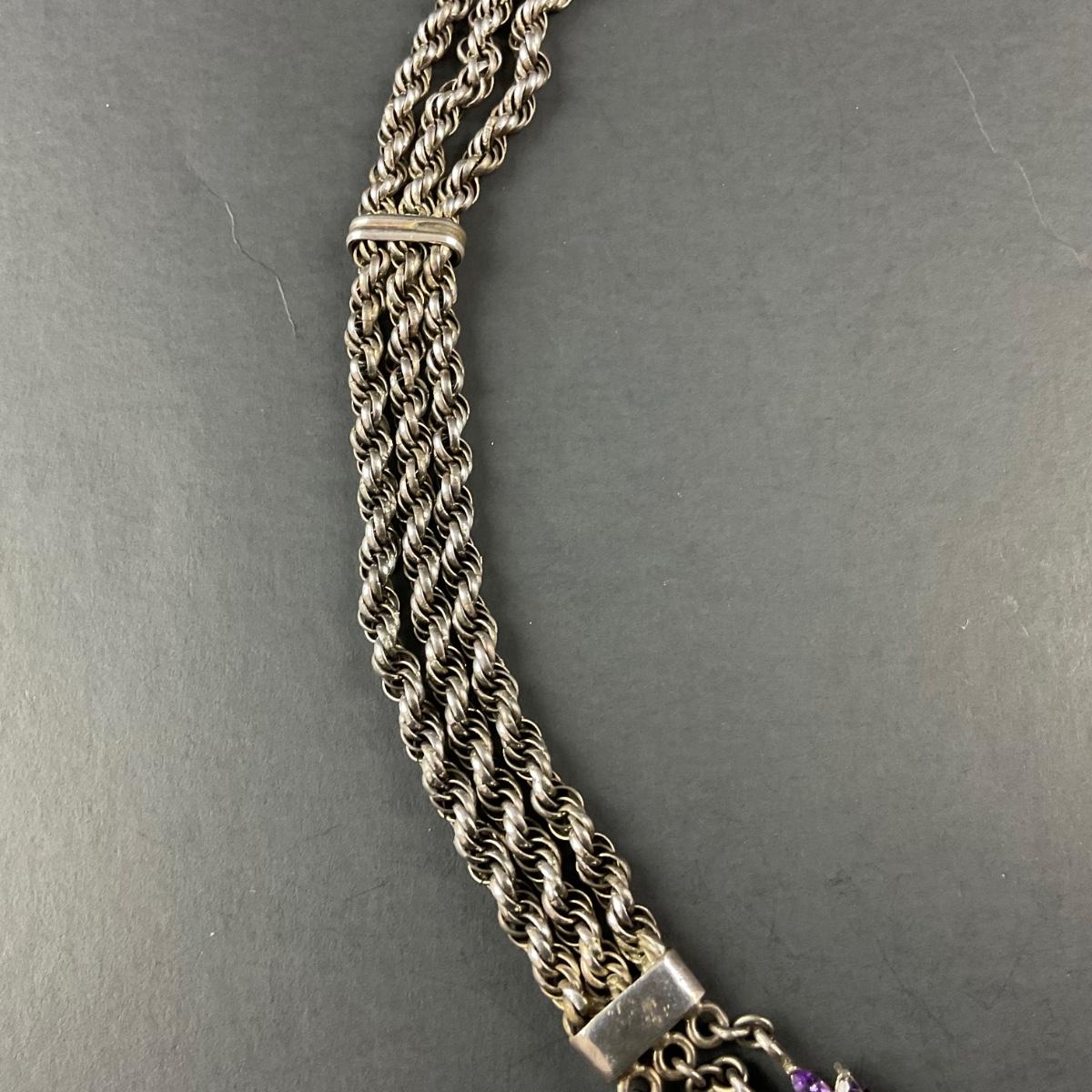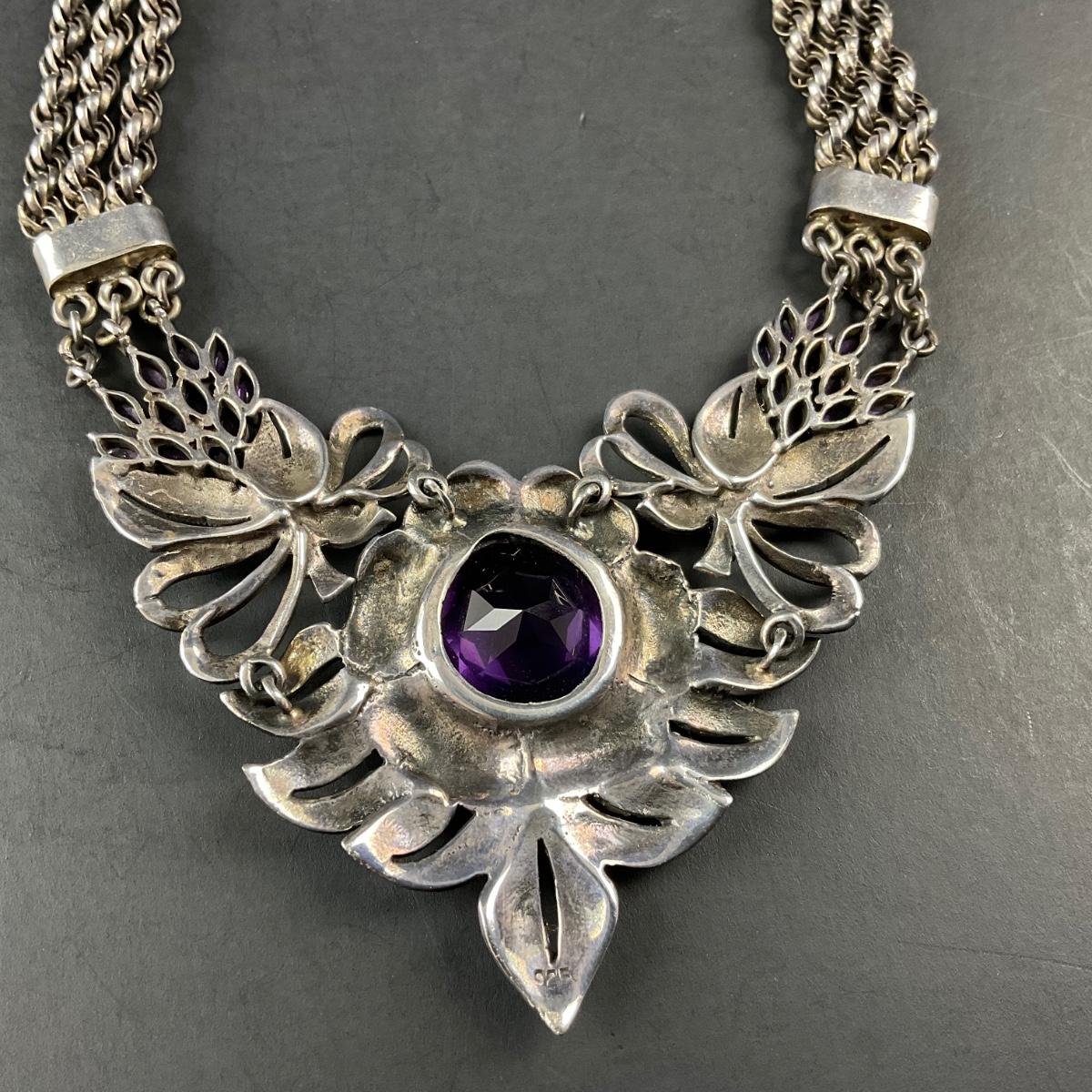 -241- SILVER | 925 Sterling Silver & Amethyst Stone Necklace | Marked
