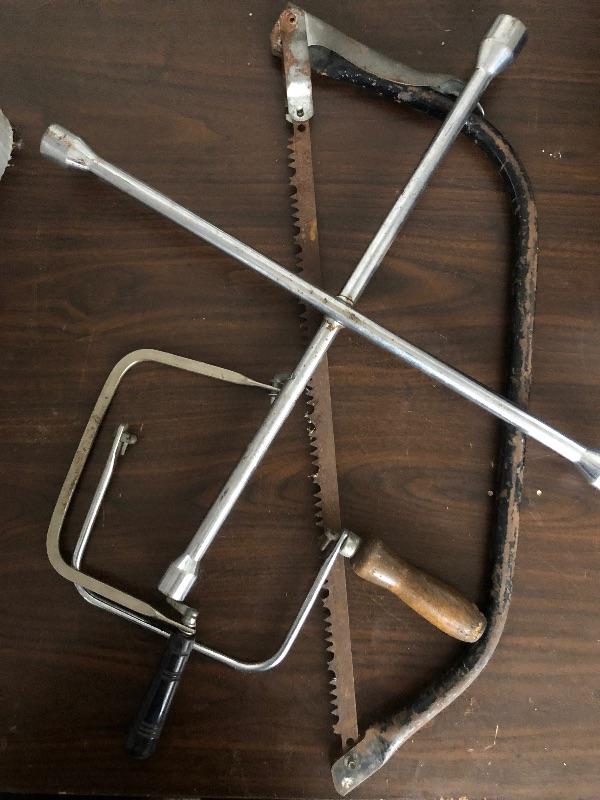 Tree saw, 4-way luv-nut and two coping saws need new blades. Used condition. This is an ONSITE Auction all items will need to be picked up on location. Please see auction description for pick up procedures.
