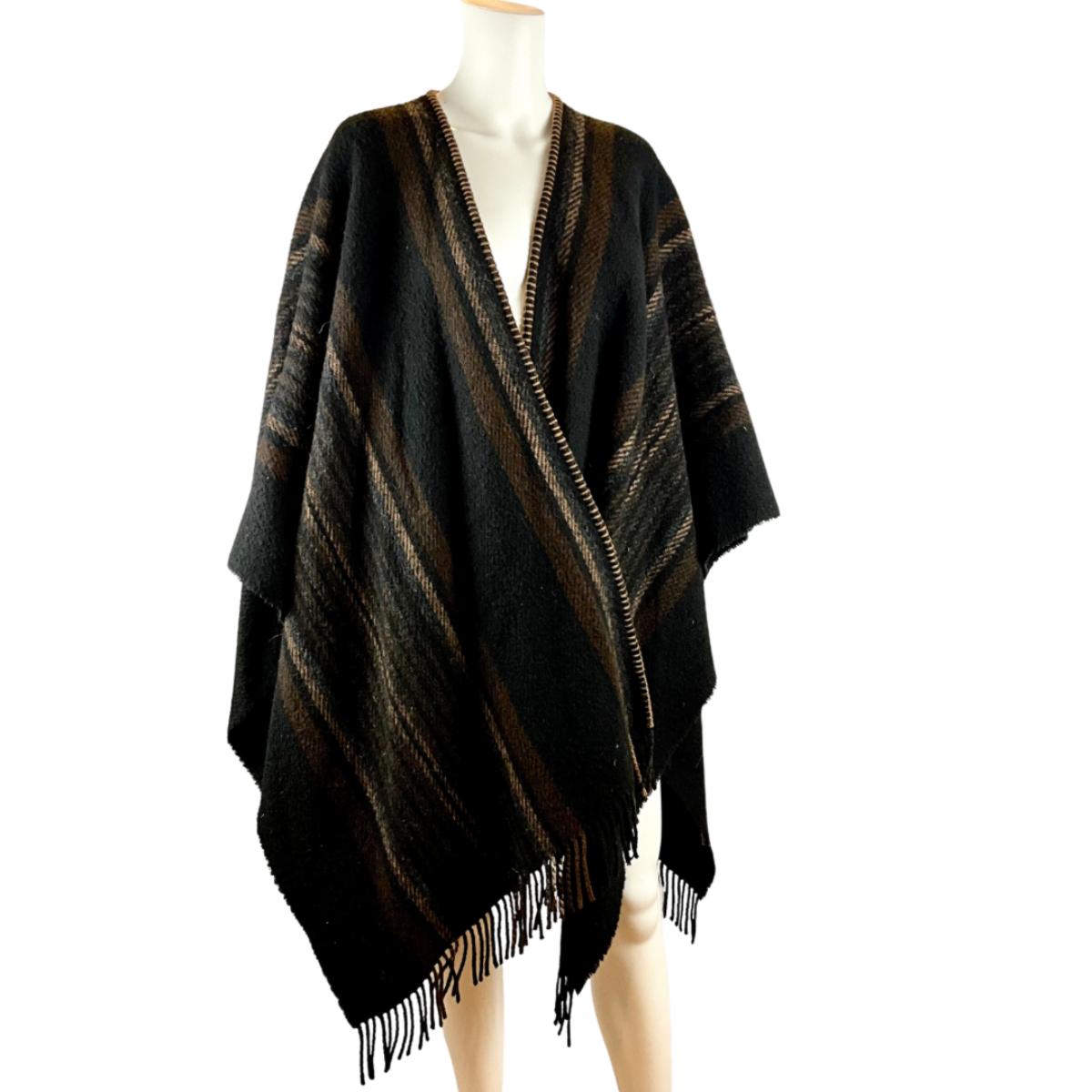 Cozy and stylish wool shawl by FARMERS MARKET, perfect for layering during chilly mornings or casual outings. Features a classic striped design in earthy tones with fringed edges, adding a touch of rustic elegance to your wardrobe.