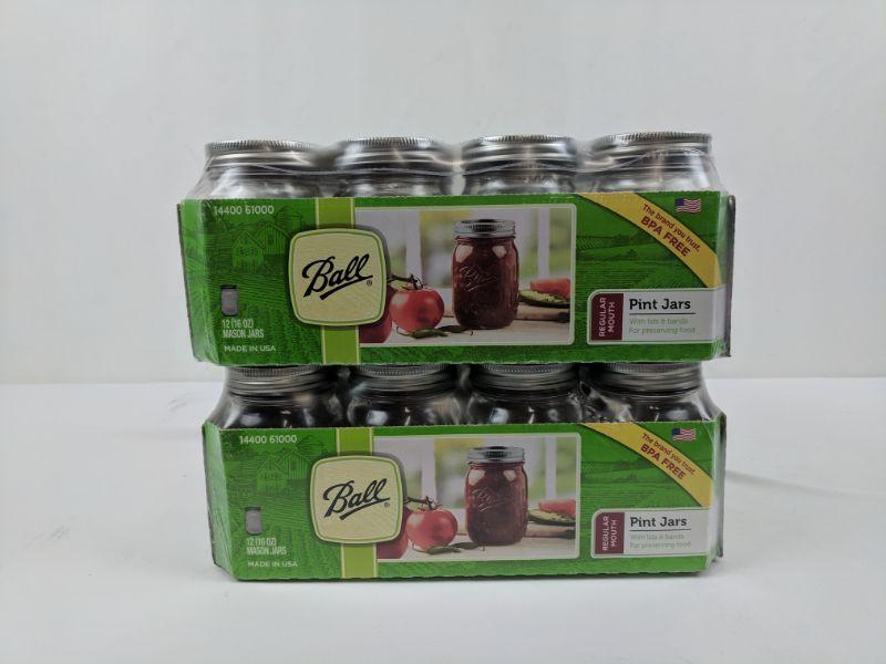 24-16oz Mason Jars, Ball, Regular Mouth Pint Jars, BPA Free, Qty 24 - New