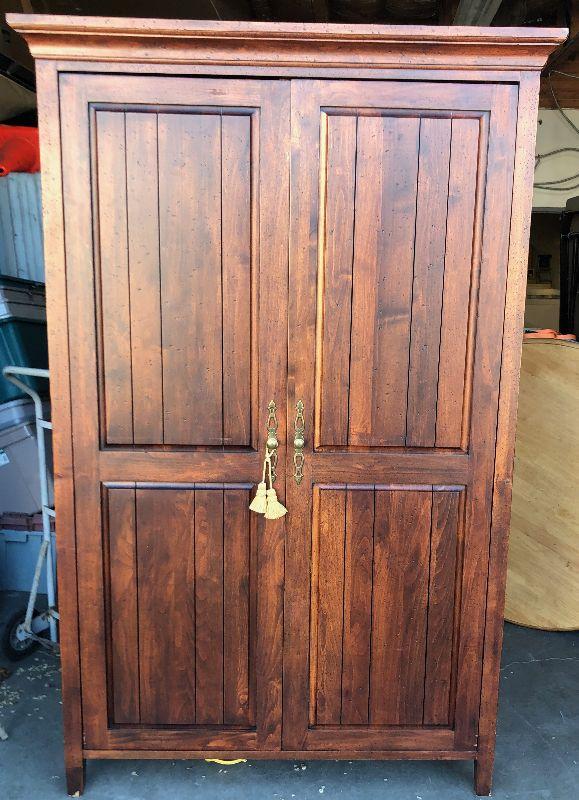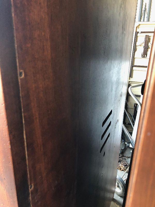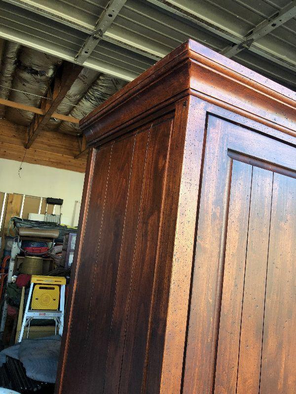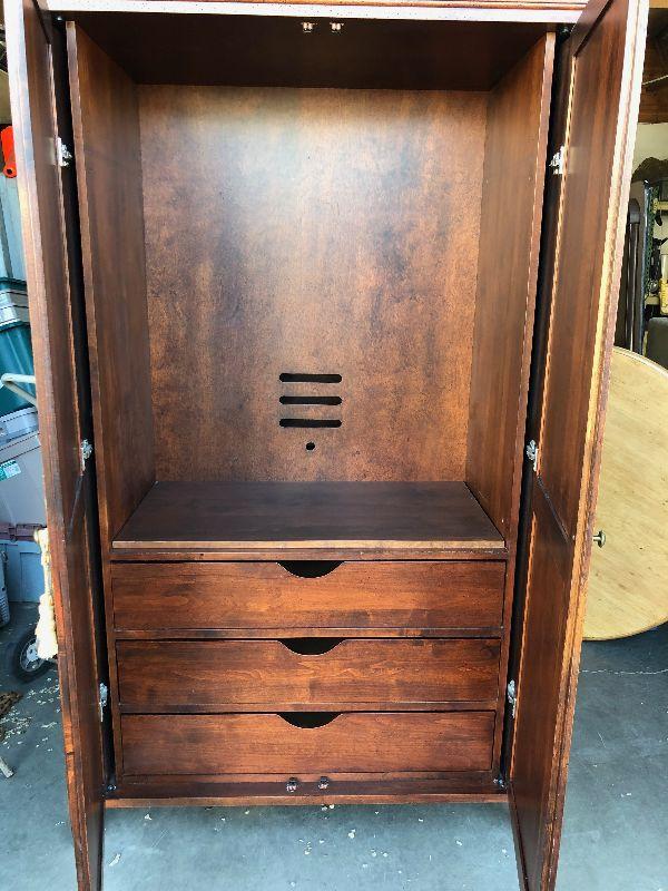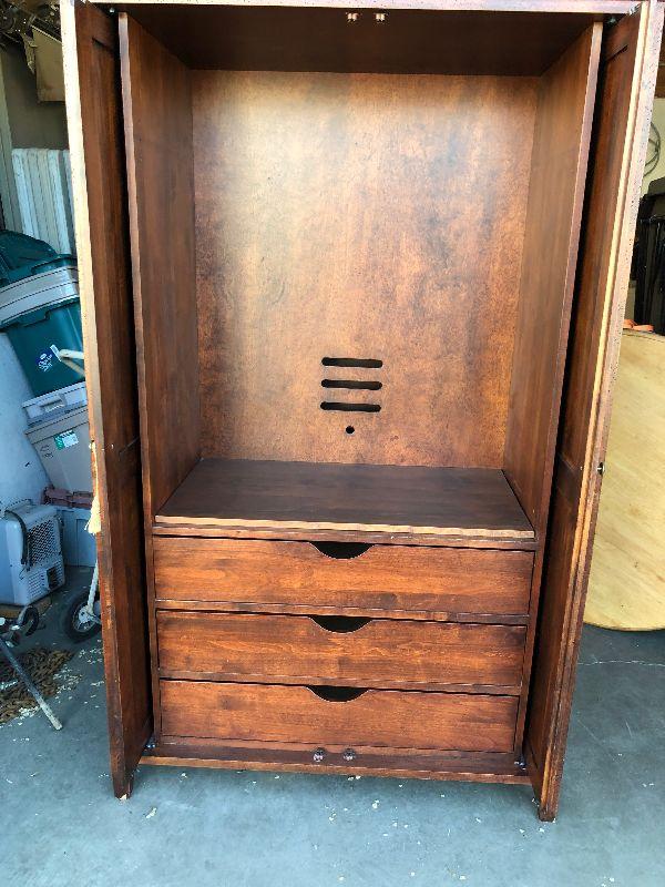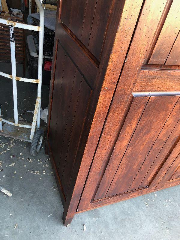 DRING HELP AND A TRUCK !!! RUSTIC DARK 48X 24 X 81 3 DRAWERS 1 Shelf Convert to TV Cabinet or Wardrobe. Doors will slid back inside of it.