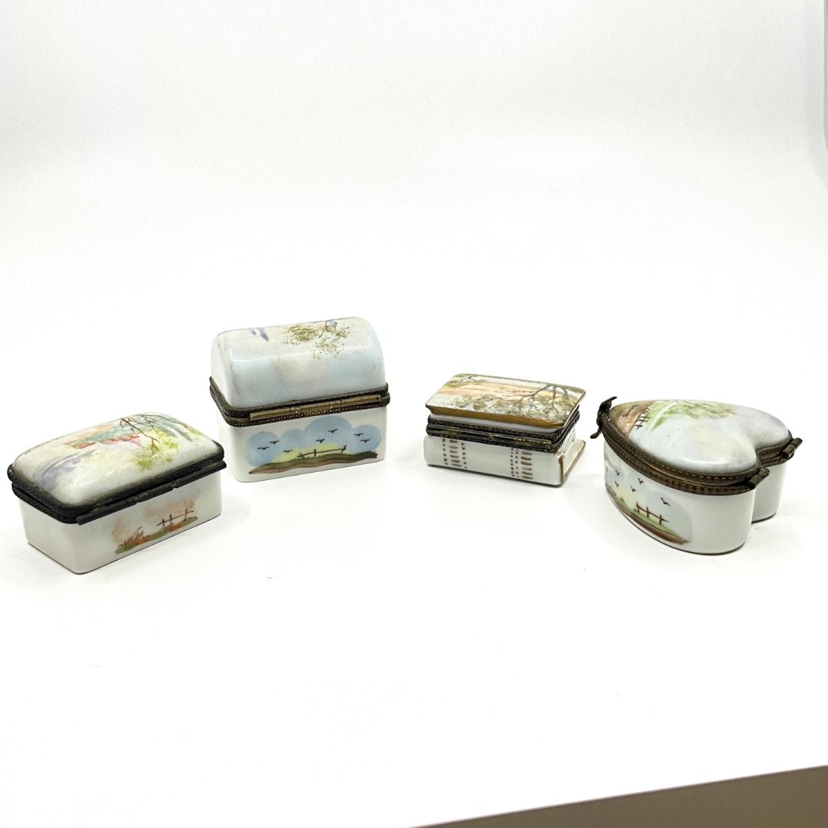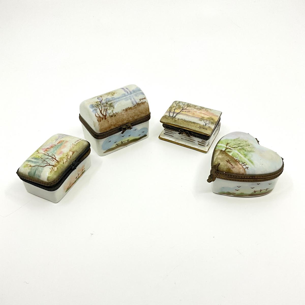 242 Four Limoges France Hand Painted Water Scenes Limoges Porcelain Boxes
