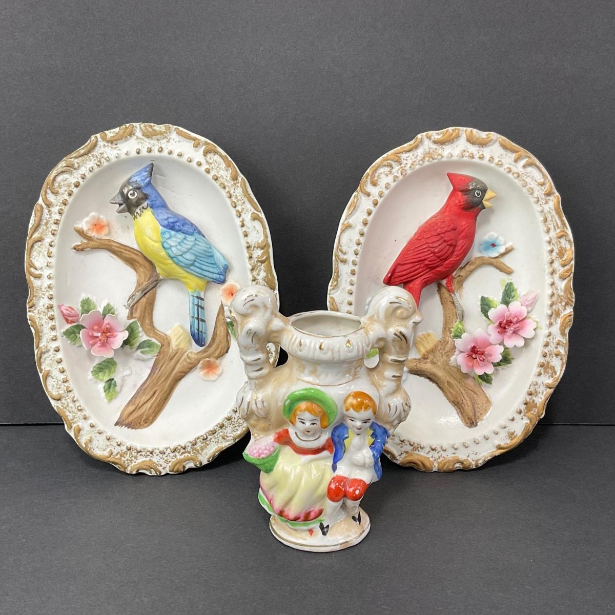 -243- COLLECTIBLE | Decorative Hanging Bird Plates & Small Decorative Vase