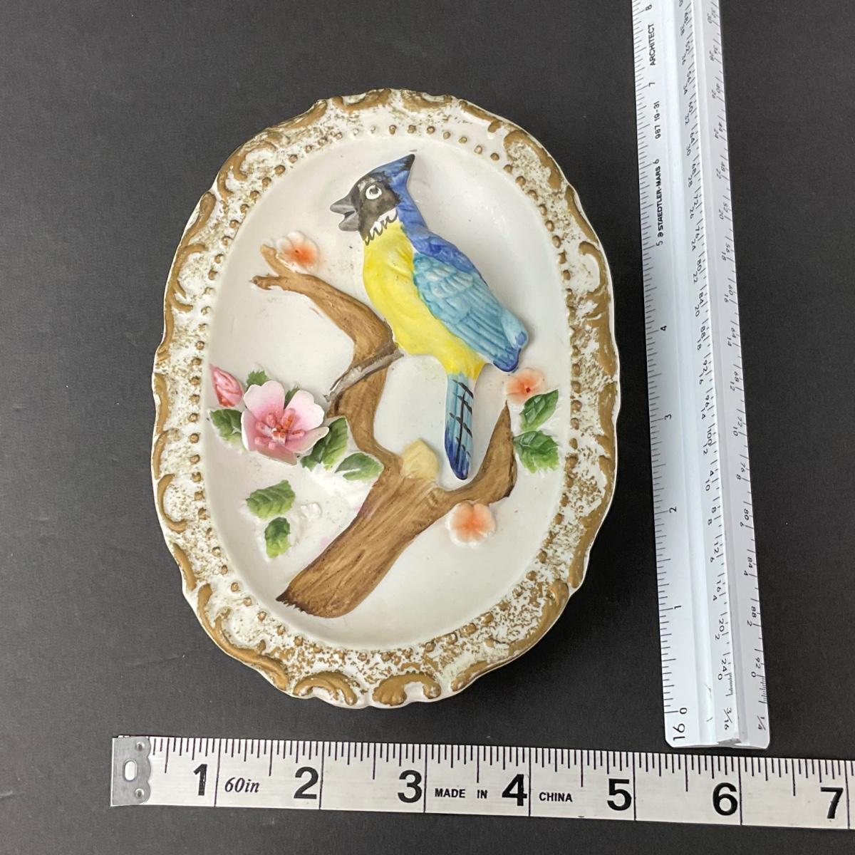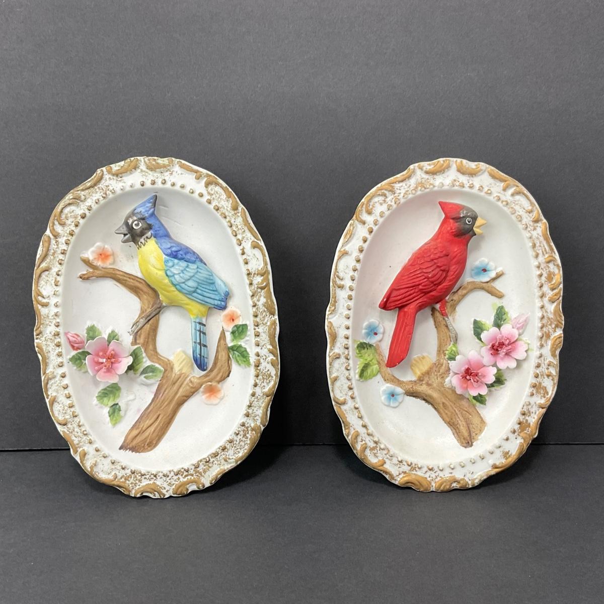 Two unique decorative hanging bird plates and one small decorative small vase. These pieces do have some scuffs, scratches, marks, or slight damage, but otherwise appears to be in great shape. Please see photos for details and condition. Any condition statement is given as a courtesy to a client, is an opinion, and should not be treated as a statement of fact. Reference to condition written, oral or within a condition report shall not be regarded as a full account of condition and may not include all defects, alterations, or restorations. Absence of a condition report does not imply a lot is flawless or lacking imperfections or damage. Katherine’s Auction & Appraisal Service shall have no responsibility for any error or omission. Returns shall not be accepted on the basis of condition. ::: Shipping is available on this lot. If you require shipping you must let us know at the close of the auction. We will coordinate with you after the item has been won. Shipping fees will include insurance up to or exceeding the value of all items being mailed. If you have any questions regarding this lot please contact the auctioneer either via this website, by direct email or by phone. PICK UP TIMES and other important information can be found in the TERMS and DESCRIPTION of the auction. Please take a look for pertinent information. Thanks!