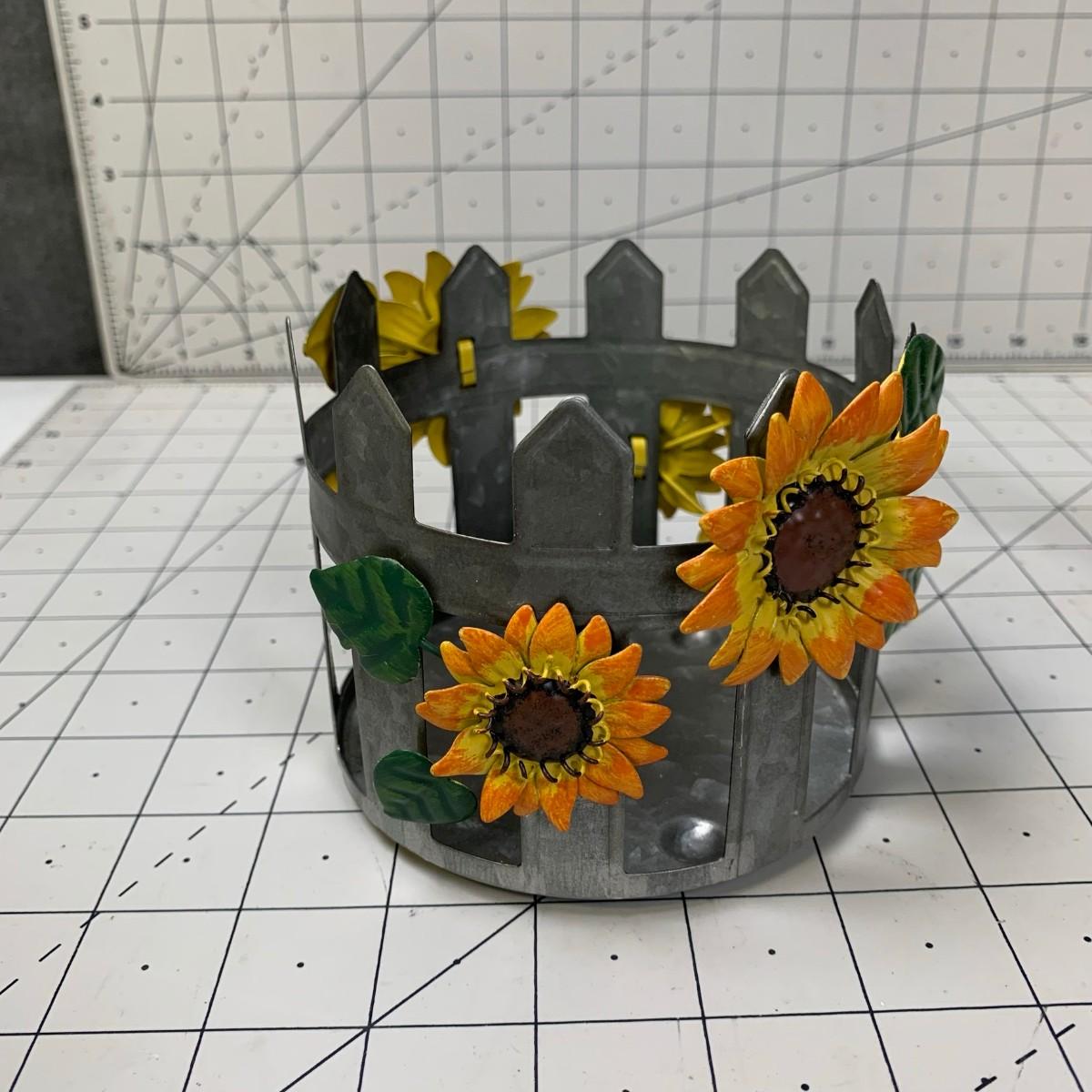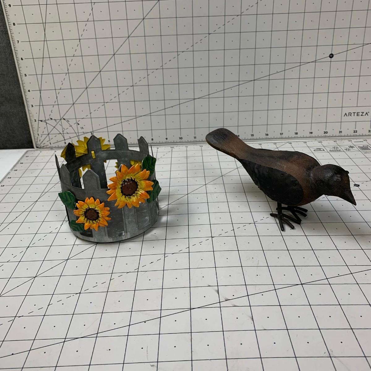 #243 Floral Fence B&B Candle Holder & Bird Decor