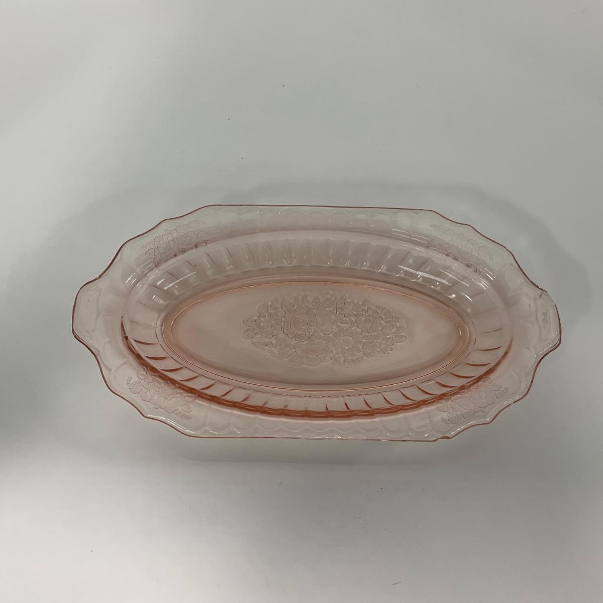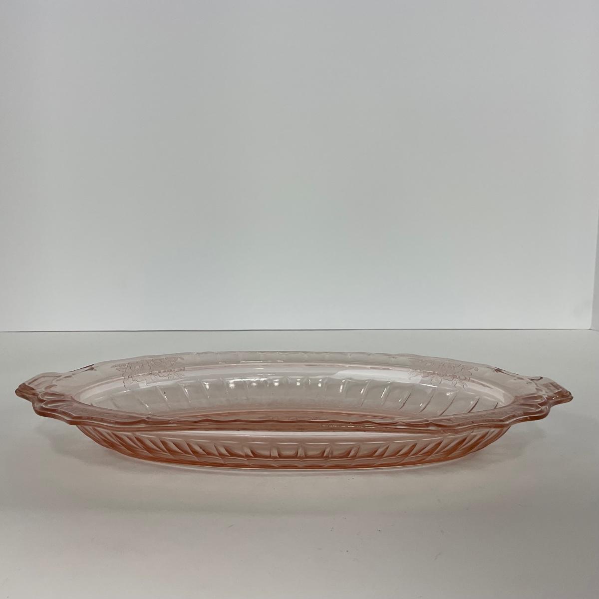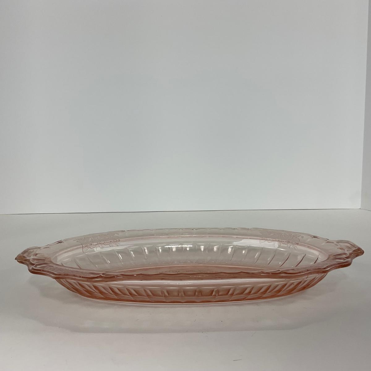 -243- GLASSWARE | Pink Mayfair Open Rose Hocking Glass Co. | Celery Dish