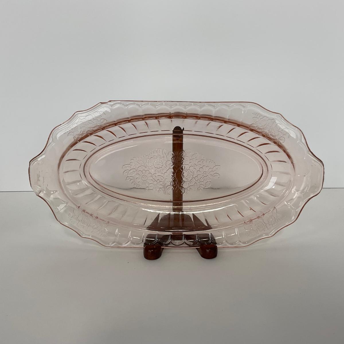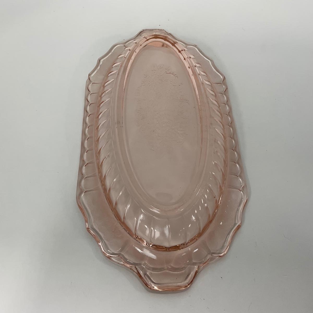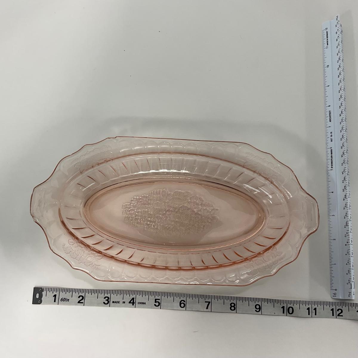 -243- GLASSWARE | Pink Mayfair Open Rose Hocking Glass Co. | Celery Dish