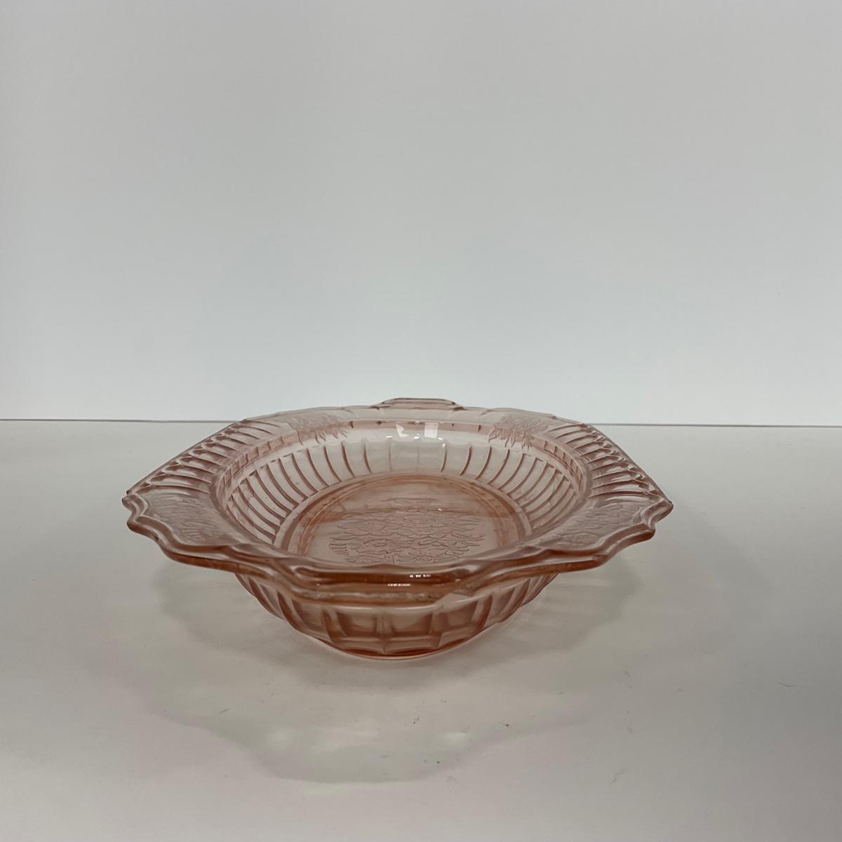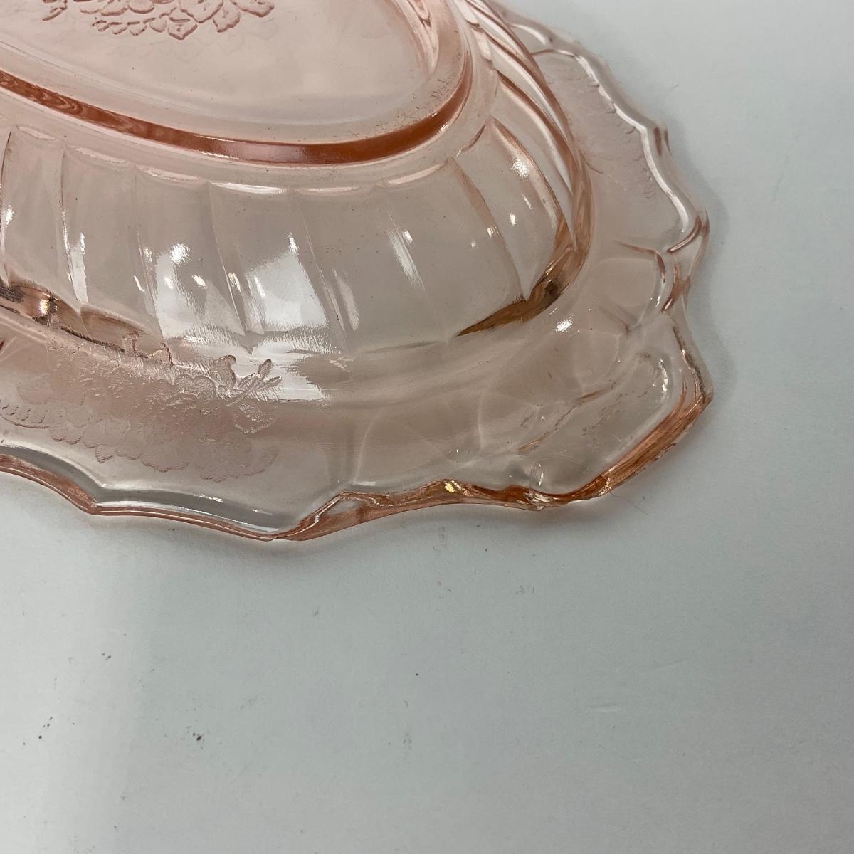 One pink Mayfair Open Rose Hocking Glass Co. (1931-1937) celery dish does have some damage. Please see photos for details and condition. ::: Shipping is available on this lot. If you require shipping you must let us know at the close of the auction. We will coordinate with you after the item has been won. Shipping fees will include insurance up to or exceeding the value of all items being mailed. If you have any questions regarding this lot please contact the auctioneer either via this website, by direct email or by phone. PICK UP TIMES and other important information can be found in the TERMS and DESCRIPTION of the auction. Please take a look for pertinent information. Thanks!