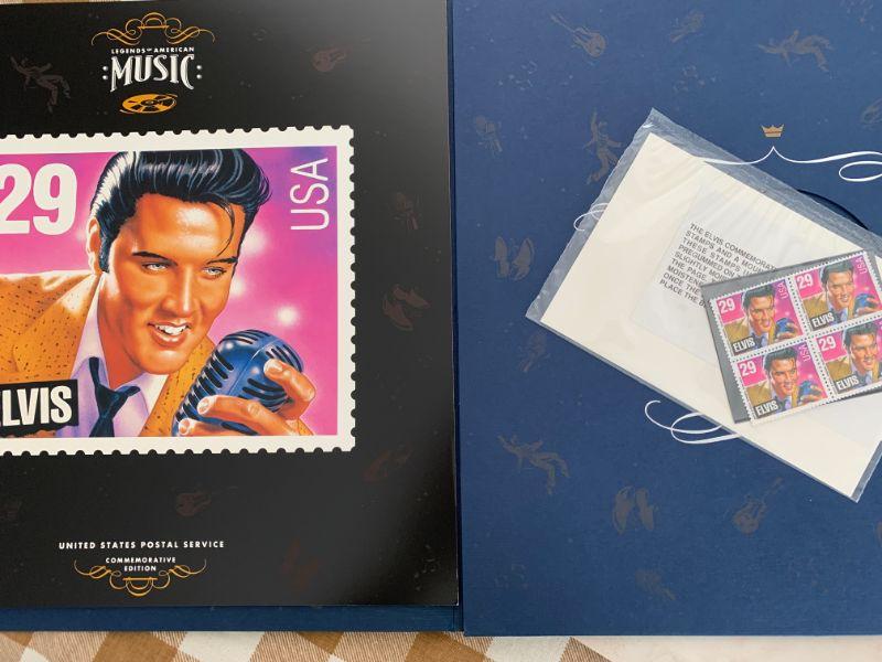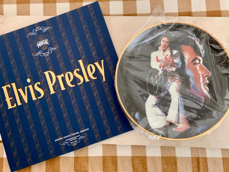 The King Elvis Presley collector plate, USPS ELVIS ALBUM w/stamps, 1st day cover, post cards, ornament