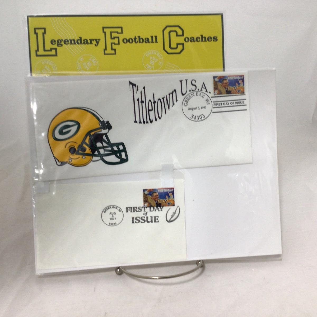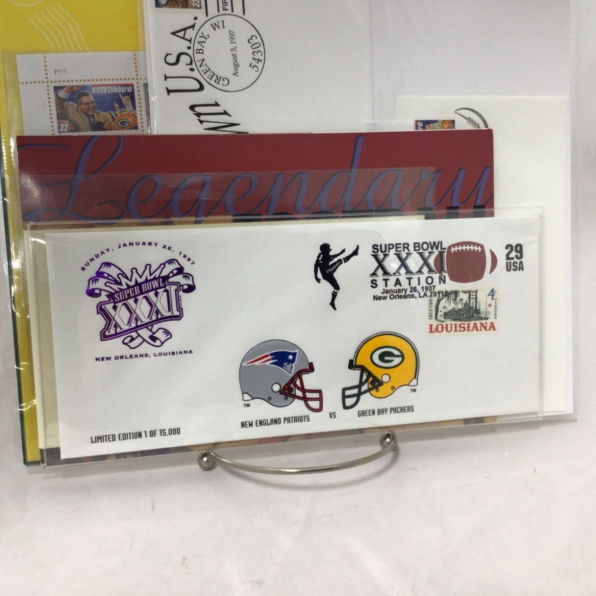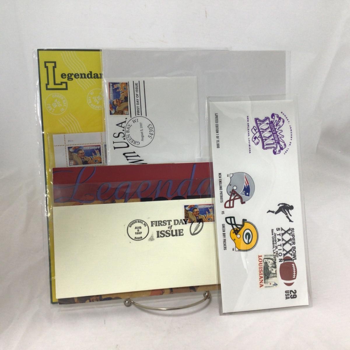 Six mixed group of Packers first day covers and stamps. Please see photos for details and condition. ::: Shipping is available on this lot. If you require shipping you must let us know at the close of the auction. We will coordinate with you after the item has been won. Shipping fees will include insurance up to or exceeding the value of all items being mailed. If you have any questions regarding this lot please contact the auctioneer either via this website, by direct email or by phone. PICK UP TIMES and other important information can be found in the TERMS and DESCRIPTION of the auction. Please take a look for pertinent information. Thanks!