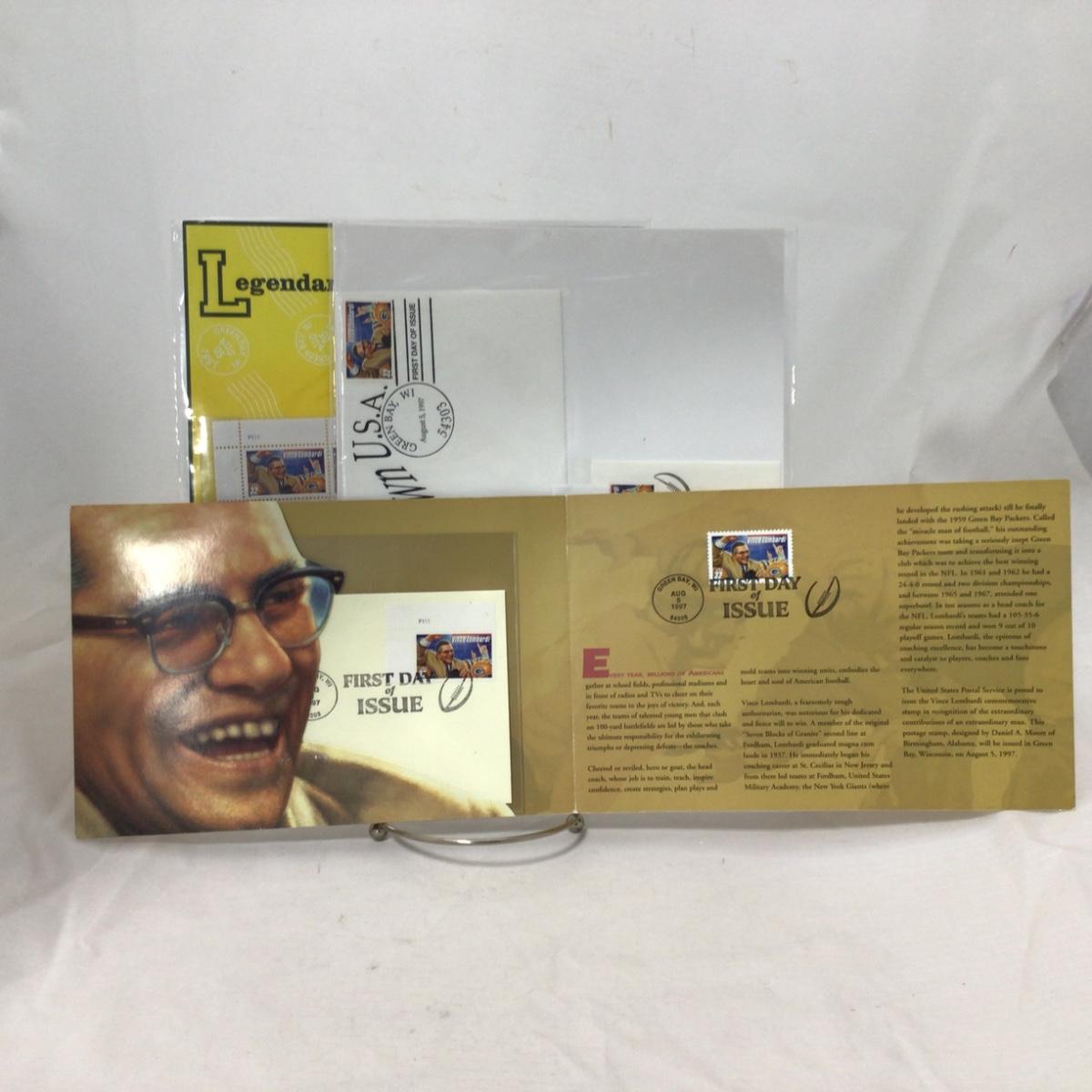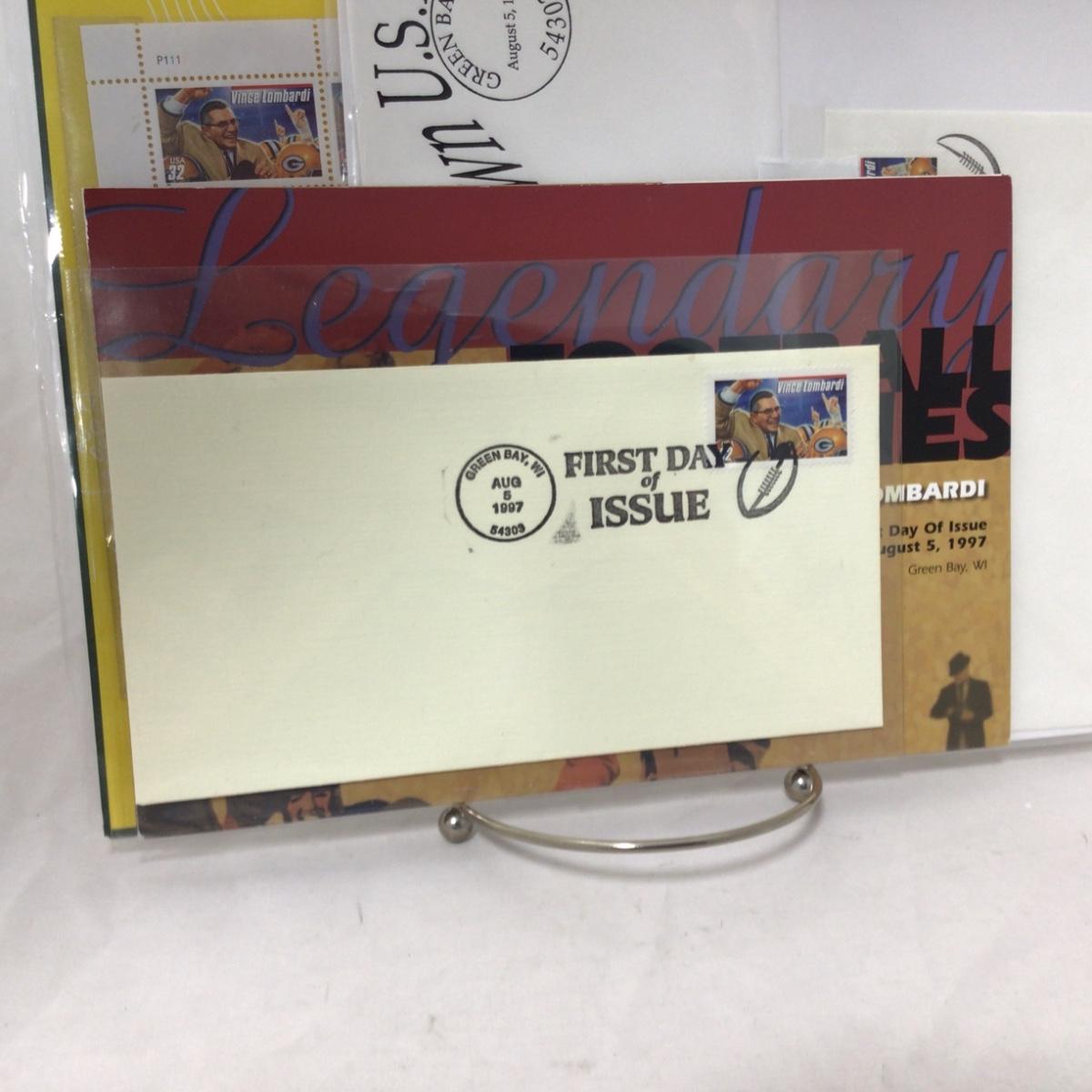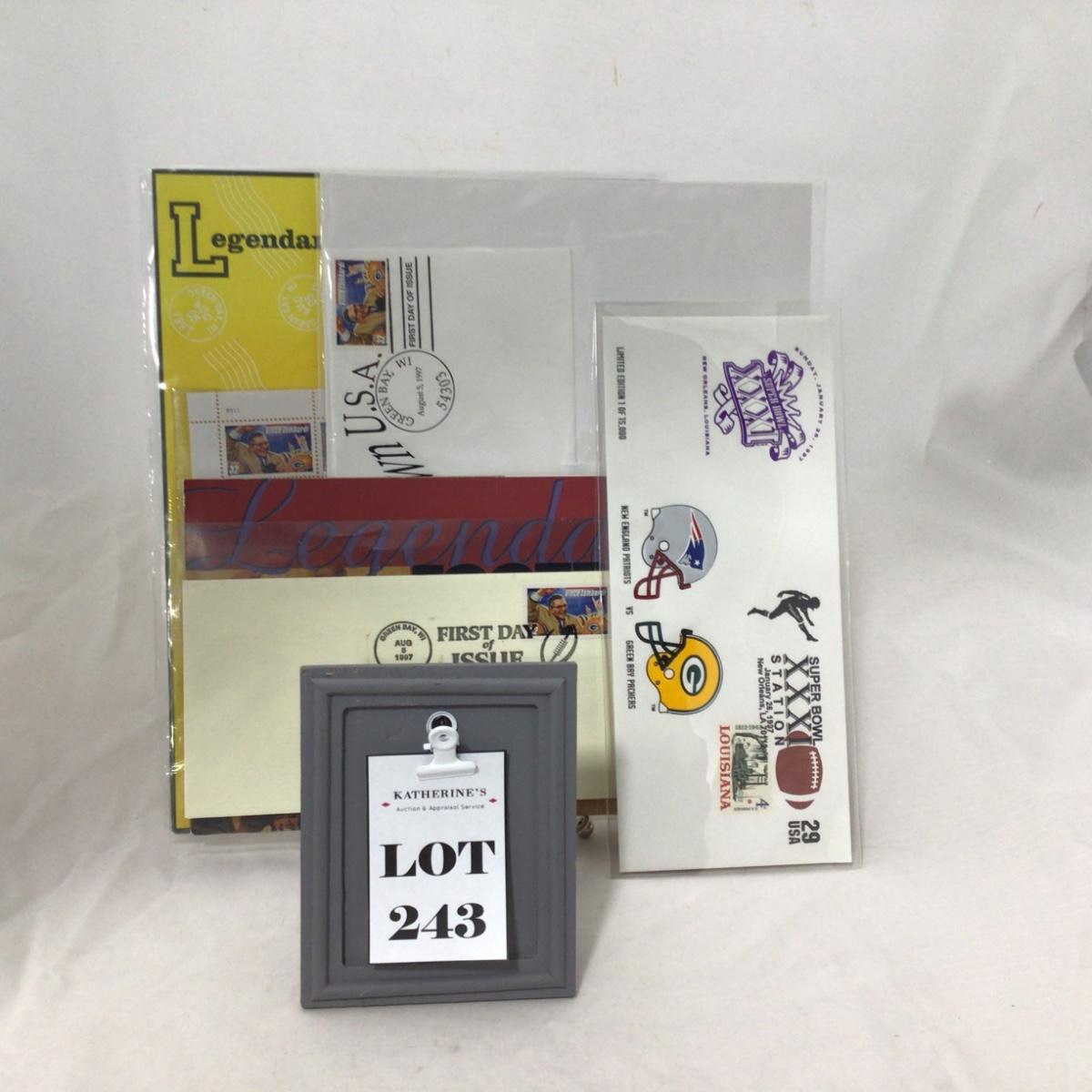 Six mixed group of Packers first day covers and stamps. Please see photos for details and condition. ::: Shipping is available on this lot. If you require shipping you must let us know at the close of the auction. We will coordinate with you after the item has been won. Shipping fees will include insurance up to or exceeding the value of all items being mailed. If you have any questions regarding this lot please contact the auctioneer either via this website, by direct email or by phone. PICK UP TIMES and other important information can be found in the TERMS and DESCRIPTION of the auction. Please take a look for pertinent information. Thanks!