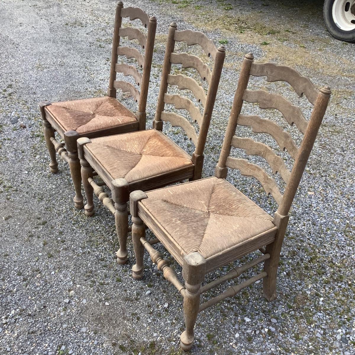 243 Set of 3 Antique Oak Chairs with Rush Seats