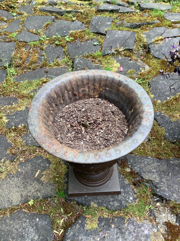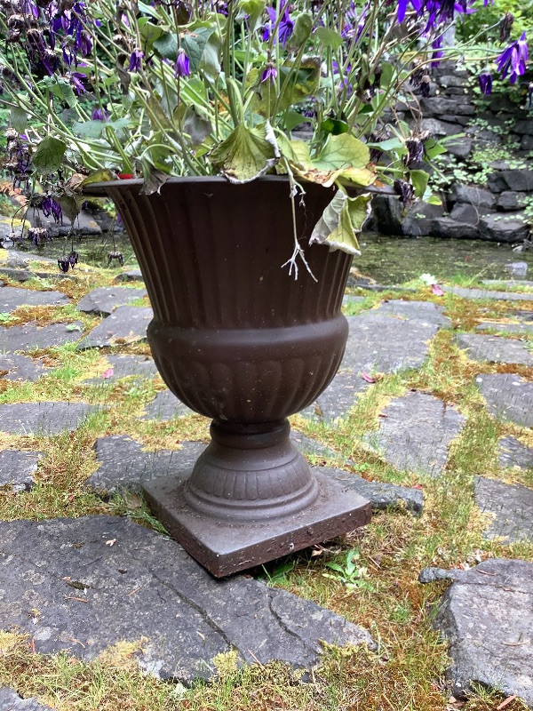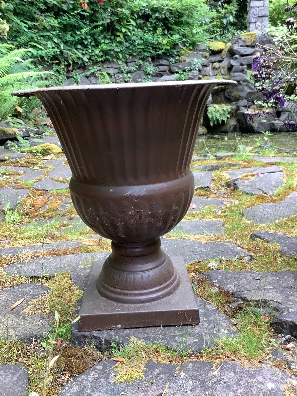 Three Garden Planters 2 Metal 15” Tall and 1 Ceramic 12” Tall