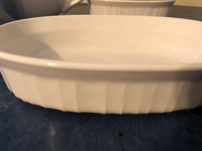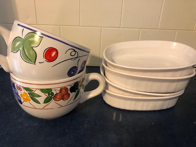 Two bowl mugs and two oven safe personal size pans. Great condition. This is an ONSITE Auction all items will need to be picked up on location. Please see auction description for pick up procedures.