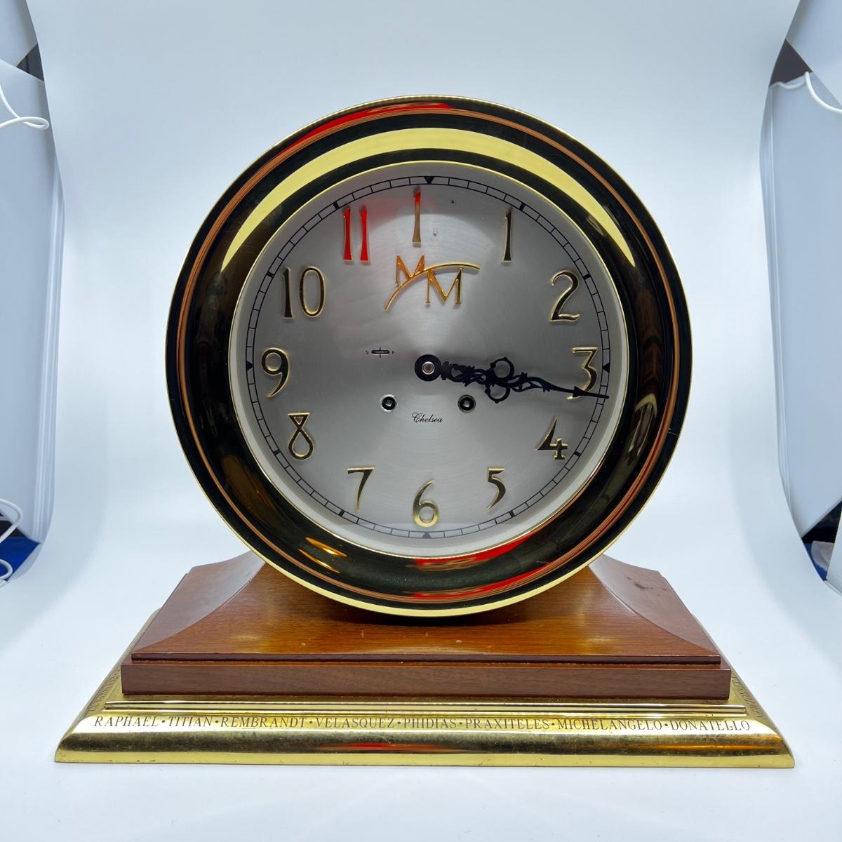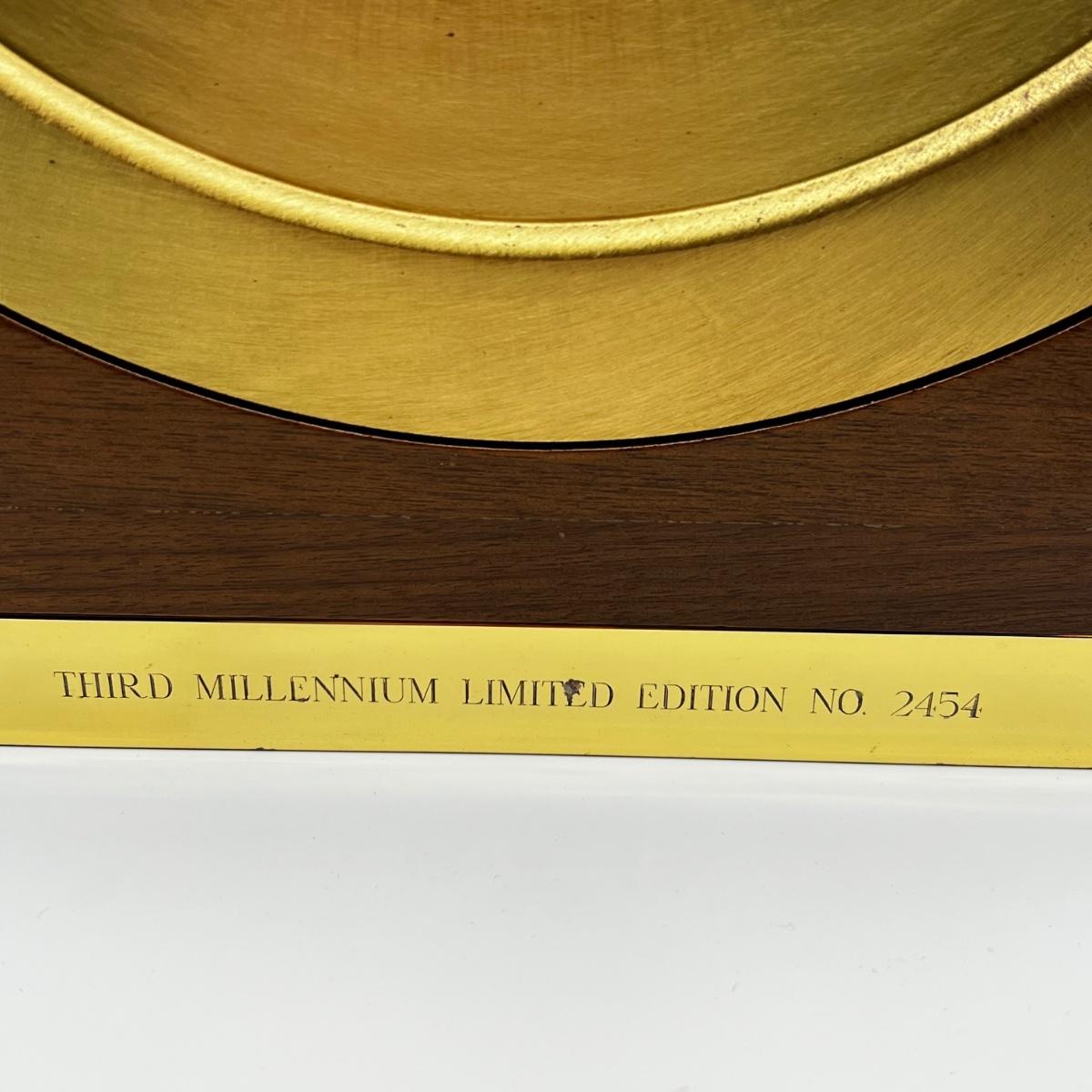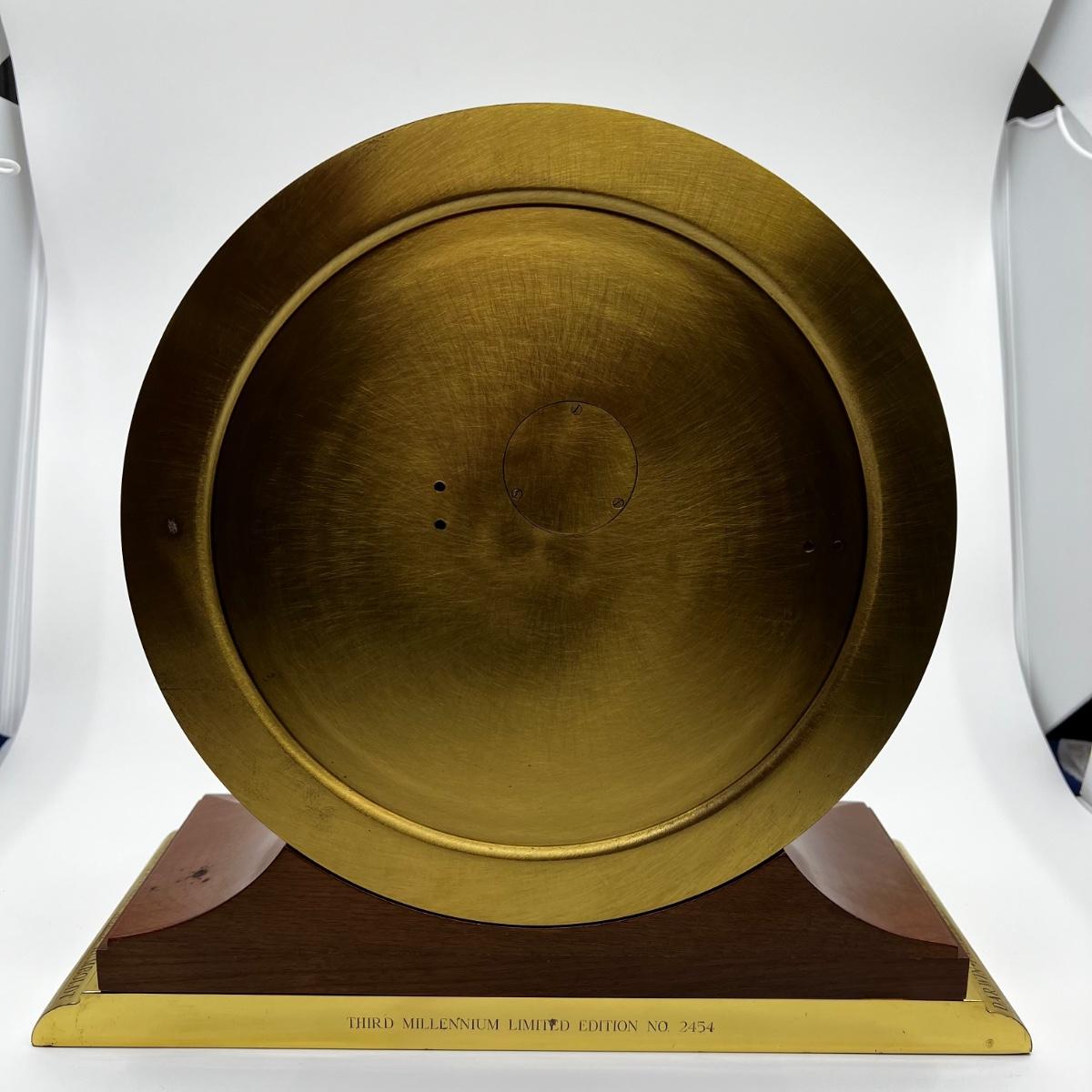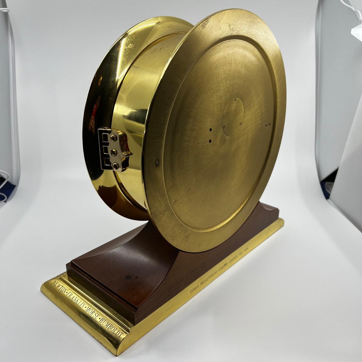 Circa 1999. Brass case with mahogany and brass base (heavy brass option), 8-day time and ship's bell strike movement, dial marked "Chelsea," case marked "Third Millennium Limited Edition No. 2454.