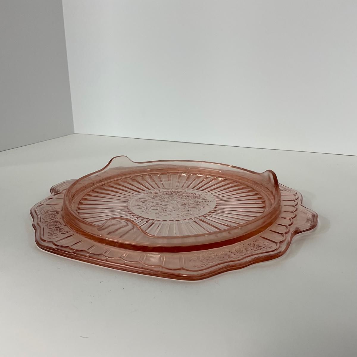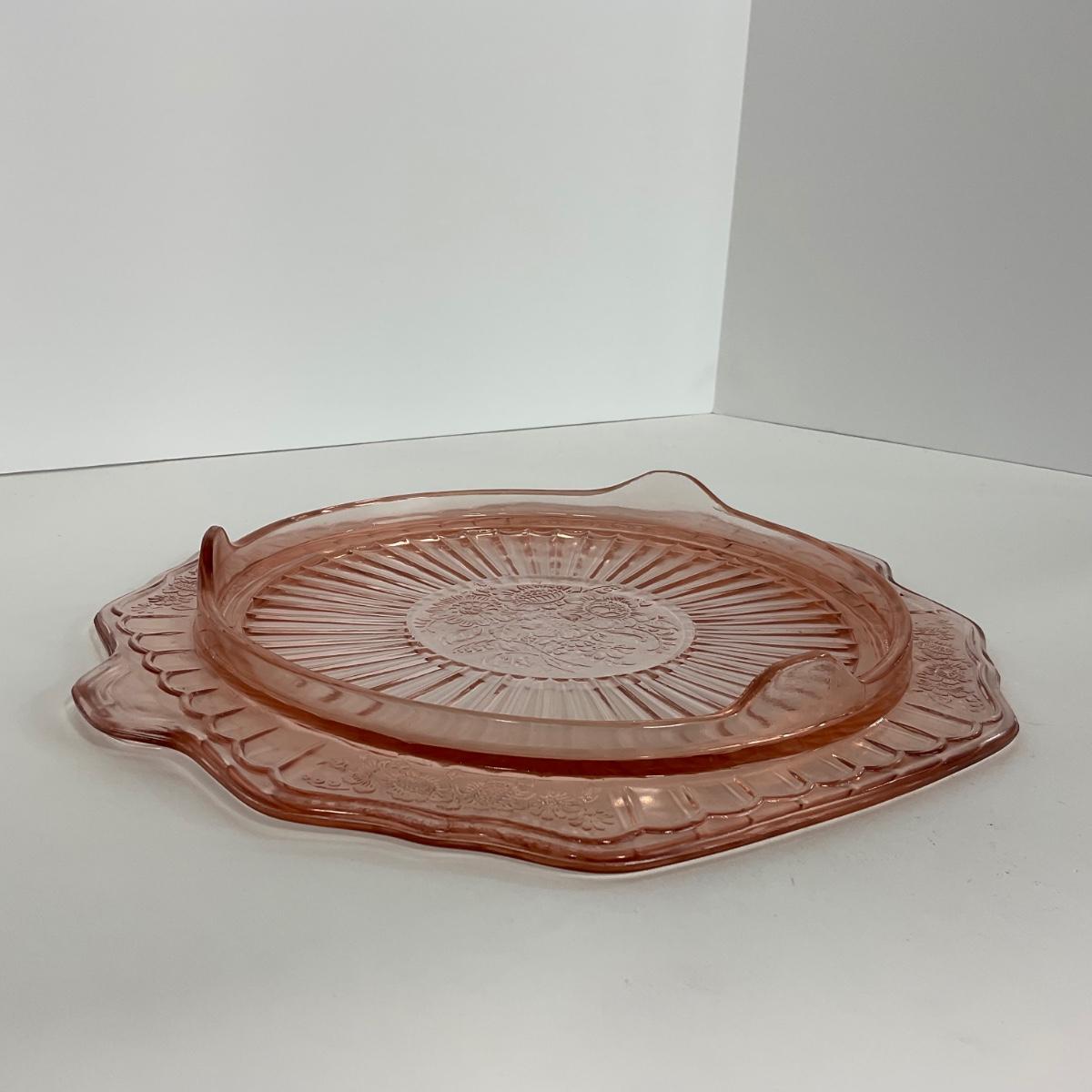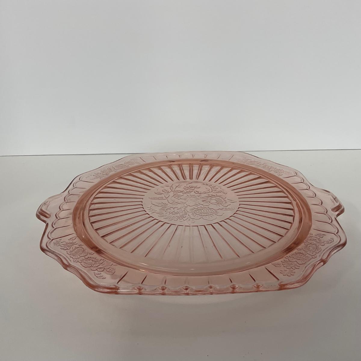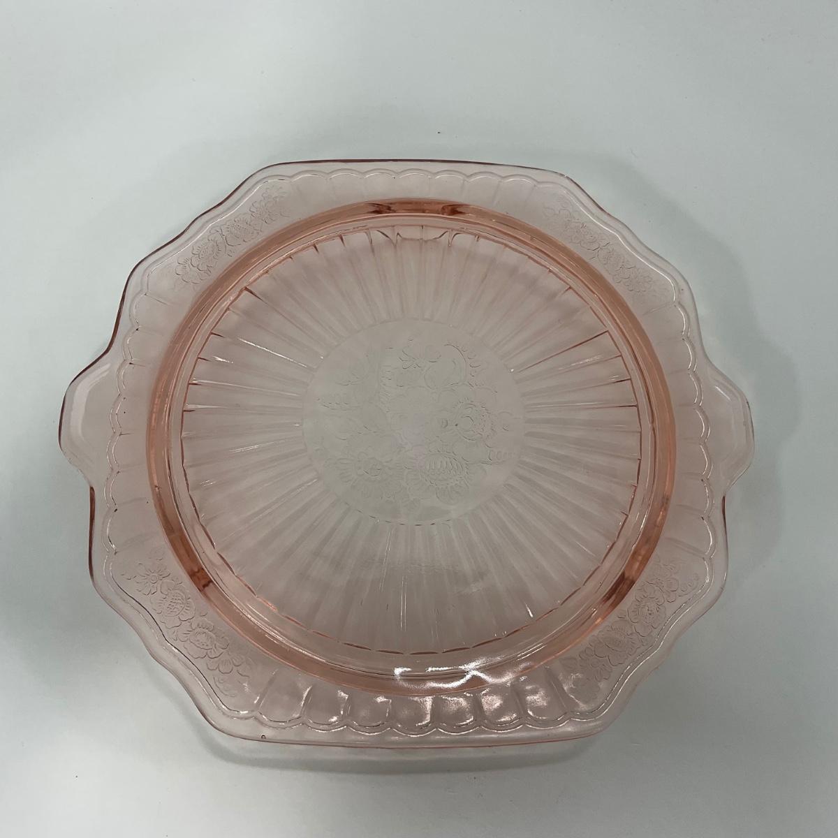 One pink Mayfair Open Rose Hocking Glass Co. (1931-1937) cake stand. Please see photos for details and condition. ::: Shipping is available on this lot. If you require shipping you must let us know at the close of the auction. We will coordinate with you after the item has been won. Shipping fees will include insurance up to or exceeding the value of all items being mailed. If you have any questions regarding this lot please contact the auctioneer either via this website, by direct email or by phone. PICK UP TIMES and other important information can be found in the TERMS and DESCRIPTION of the auction. Please take a look for pertinent information. Thanks!