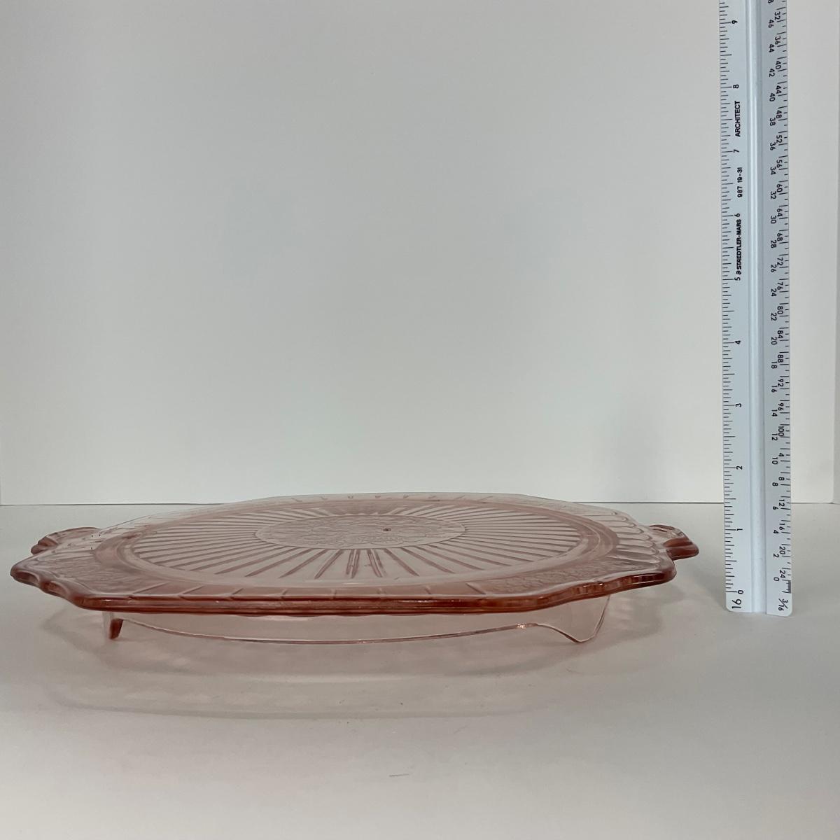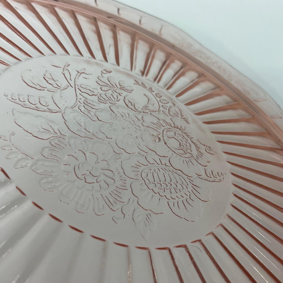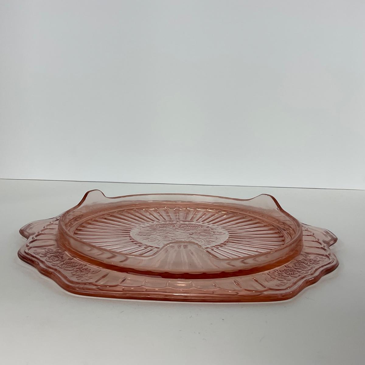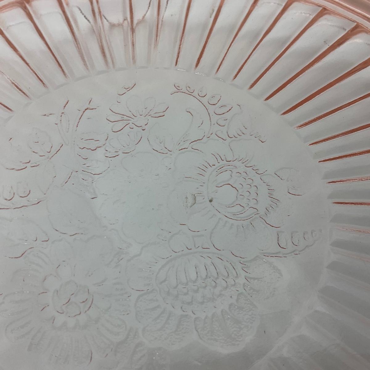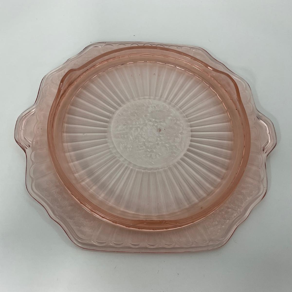 One pink Mayfair Open Rose Hocking Glass Co. (1931-1937) cake stand. Please see photos for details and condition. ::: Shipping is available on this lot. If you require shipping you must let us know at the close of the auction. We will coordinate with you after the item has been won. Shipping fees will include insurance up to or exceeding the value of all items being mailed. If you have any questions regarding this lot please contact the auctioneer either via this website, by direct email or by phone. PICK UP TIMES and other important information can be found in the TERMS and DESCRIPTION of the auction. Please take a look for pertinent information. Thanks!
