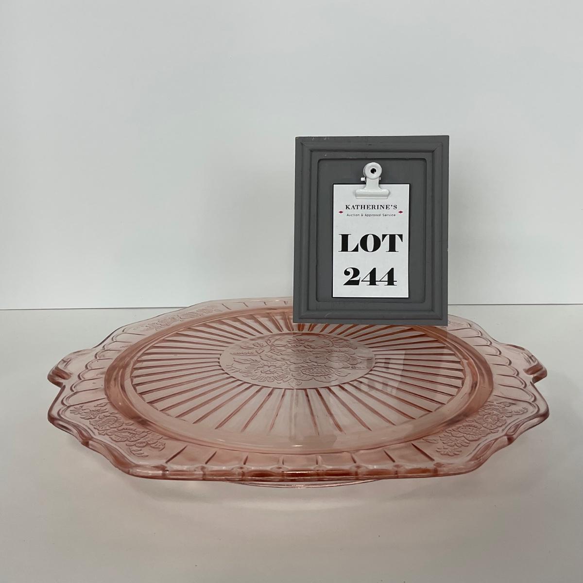 -244- GLASSWARE | Pink Mayfair Open Rose Hocking Glass Co. | Cake Stand