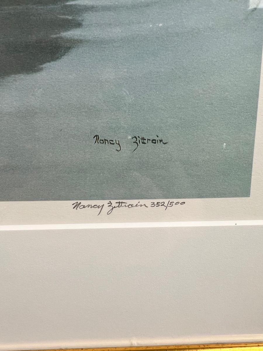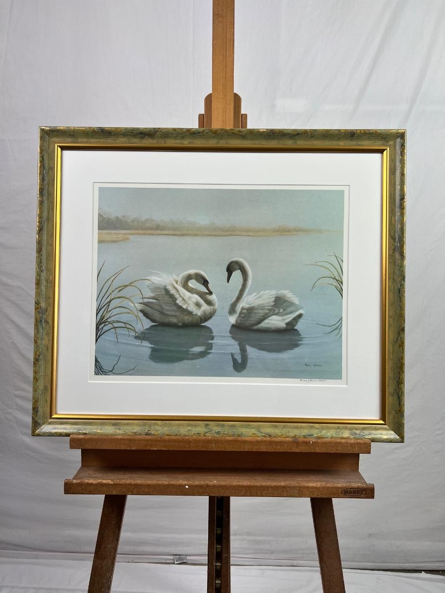 352/500 Pair of swans artwork signed by Nancy Zittrain. Framed and single matted.