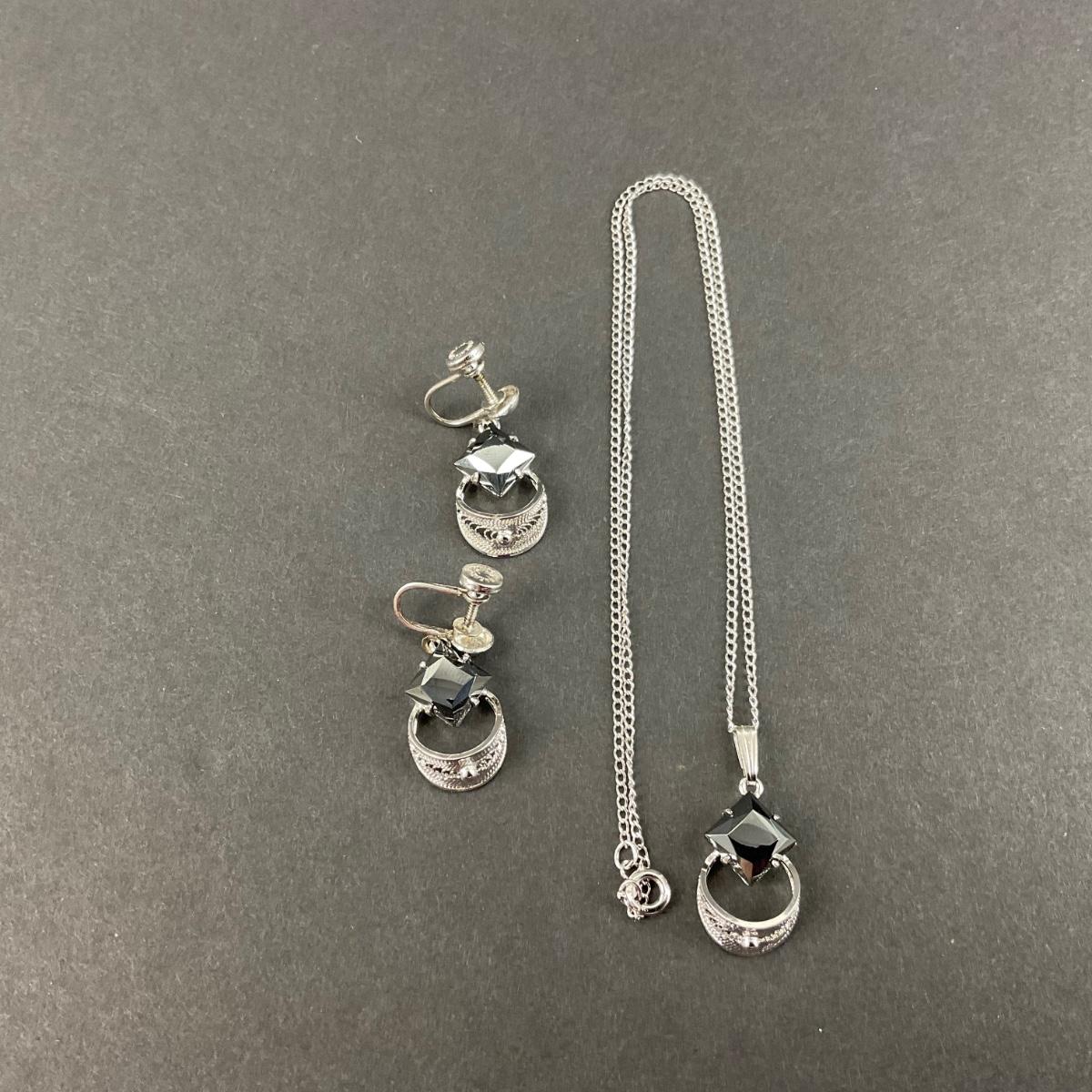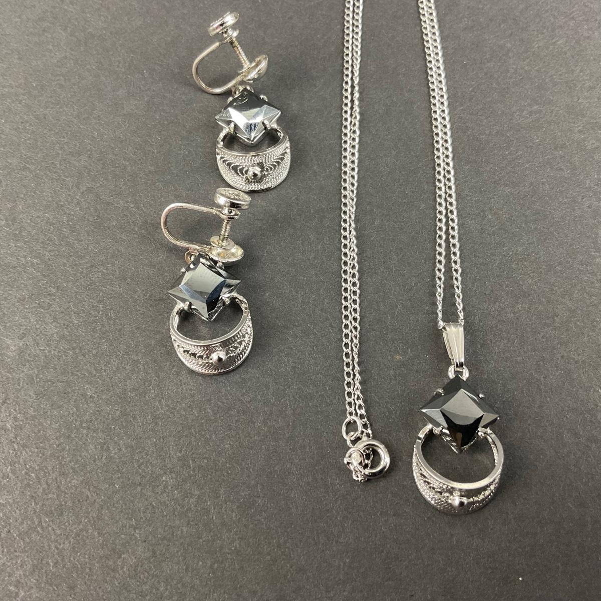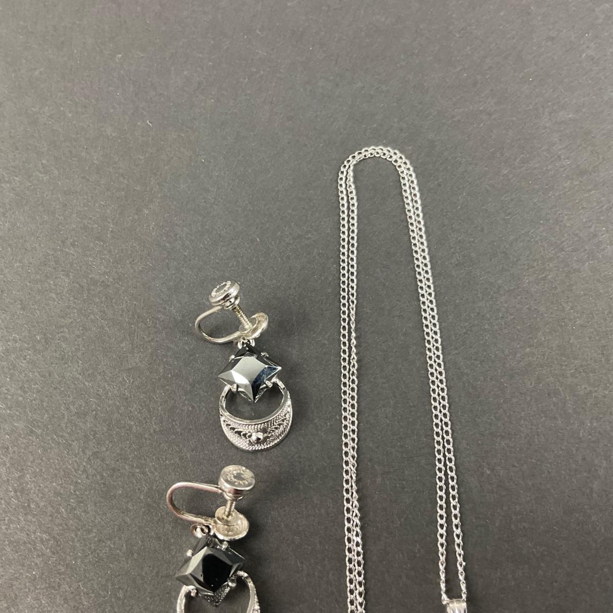 -244- SILVER | Sterling & Black Stone Sorrento Necklace & Earrings | Marked