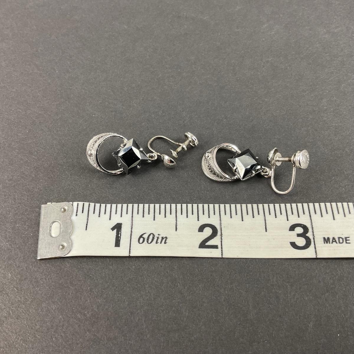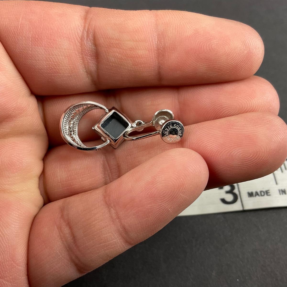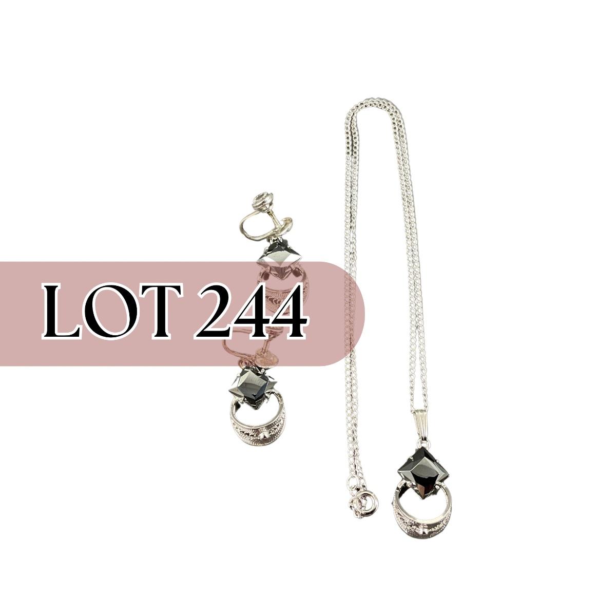 -244- SILVER | Sterling & Black Stone Sorrento Necklace & Earrings | Marked