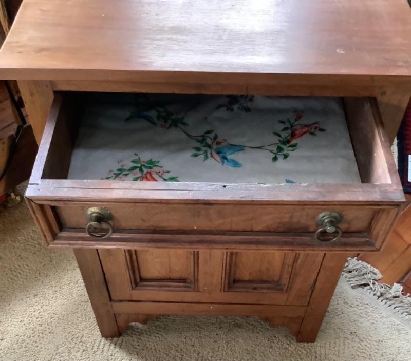 Vintage single drawer washstand measures 29-1/2” high 23” wide and 18” deep