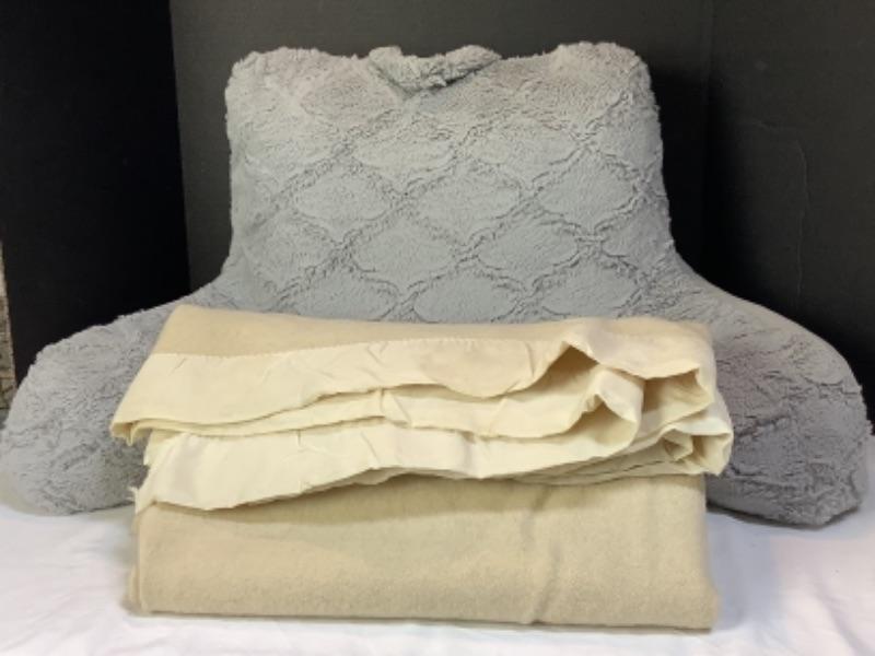 Twin size wool blanket and a back rest pillow , pet friendly home, cover comes off of pillow for washing