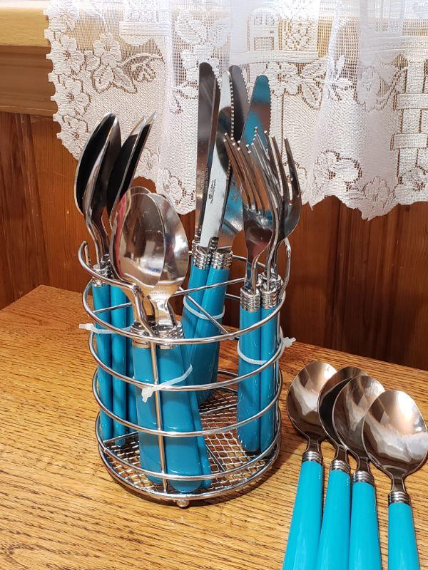 2-45: (2) Sets of Turquois Plastic Handle Flatware