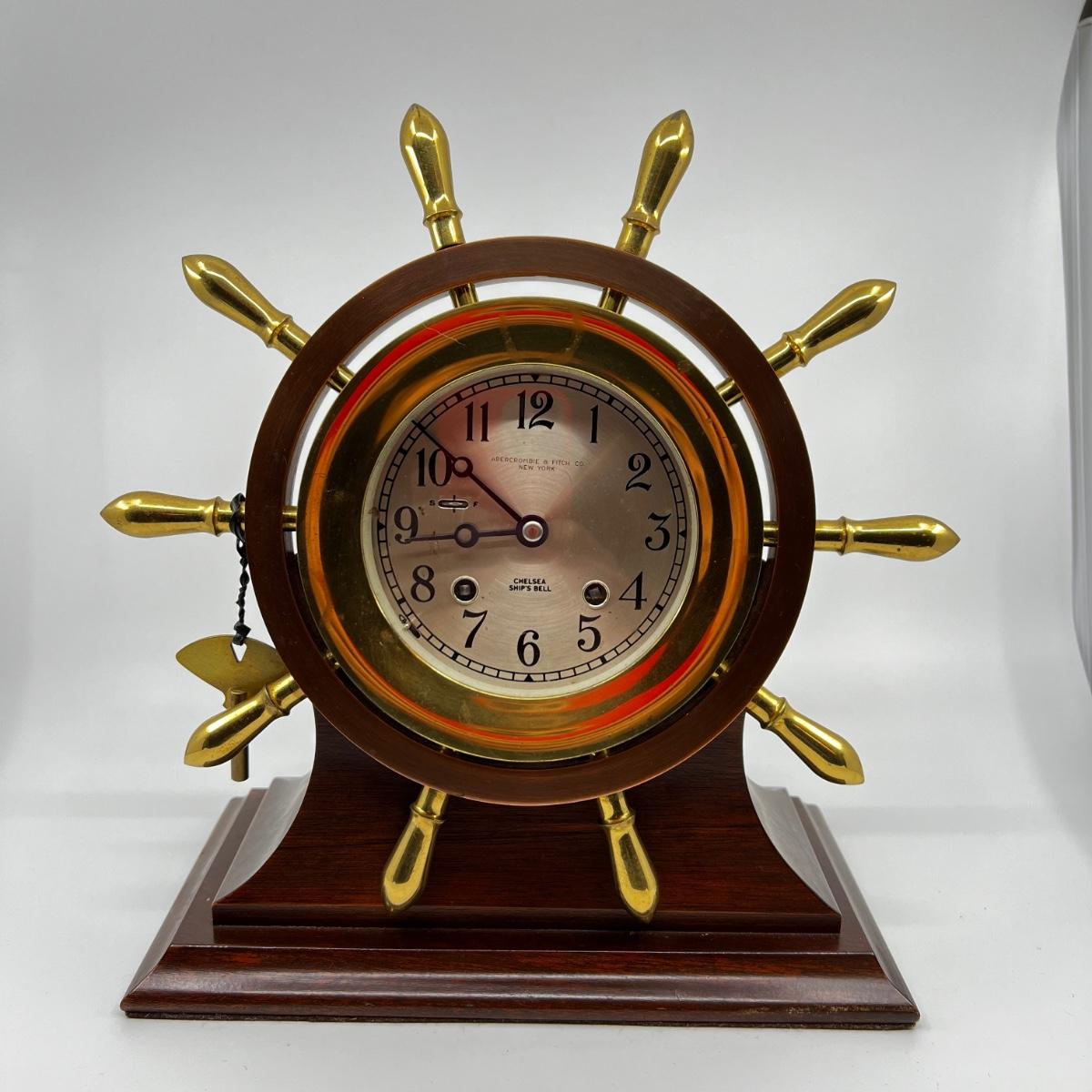 N245 Abercrombie & Fitch Co. Chelsea Ships Bell 5” Clock Brass