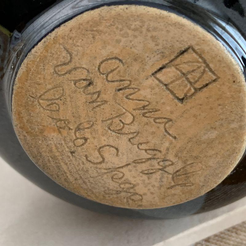 Art pottery by Anna Van Briggle Dark blue w/light blue drip glaze.