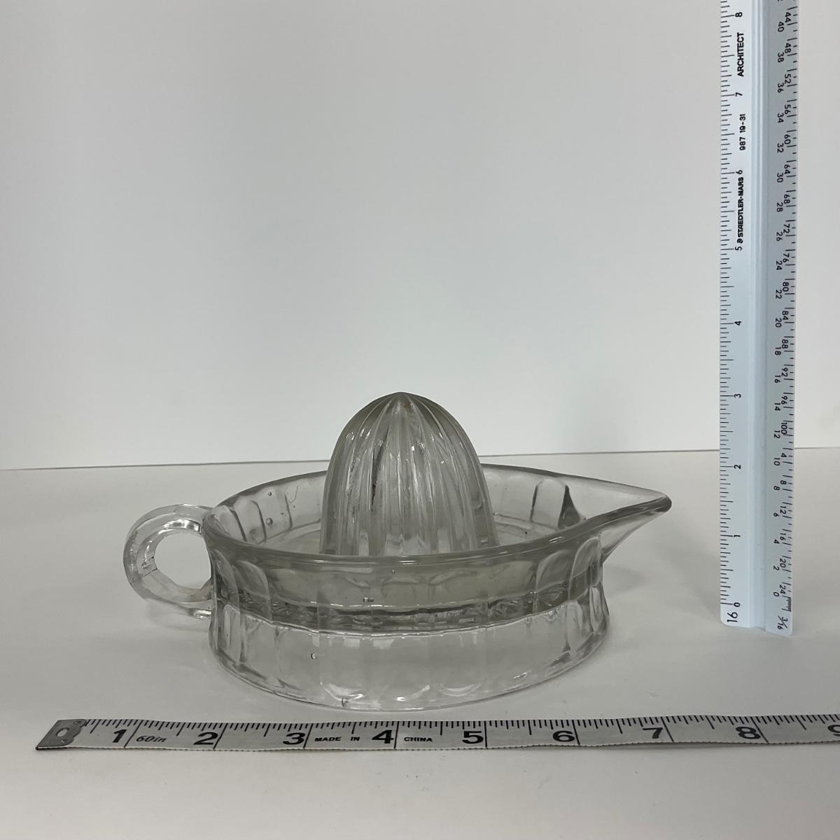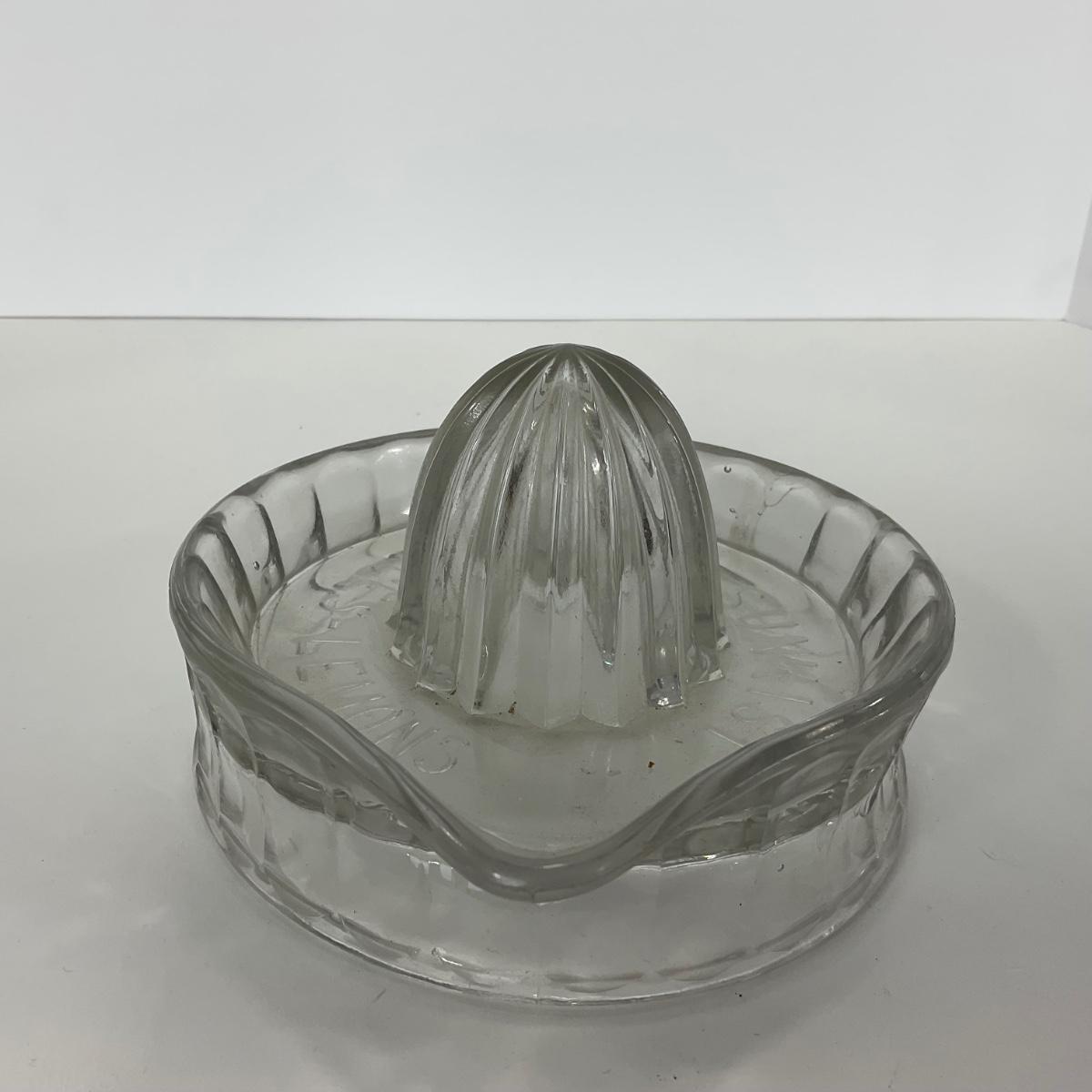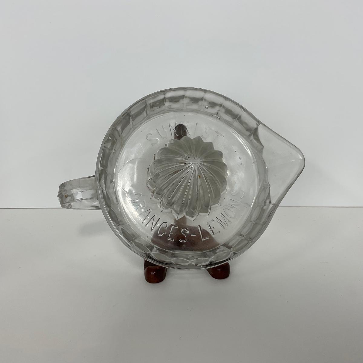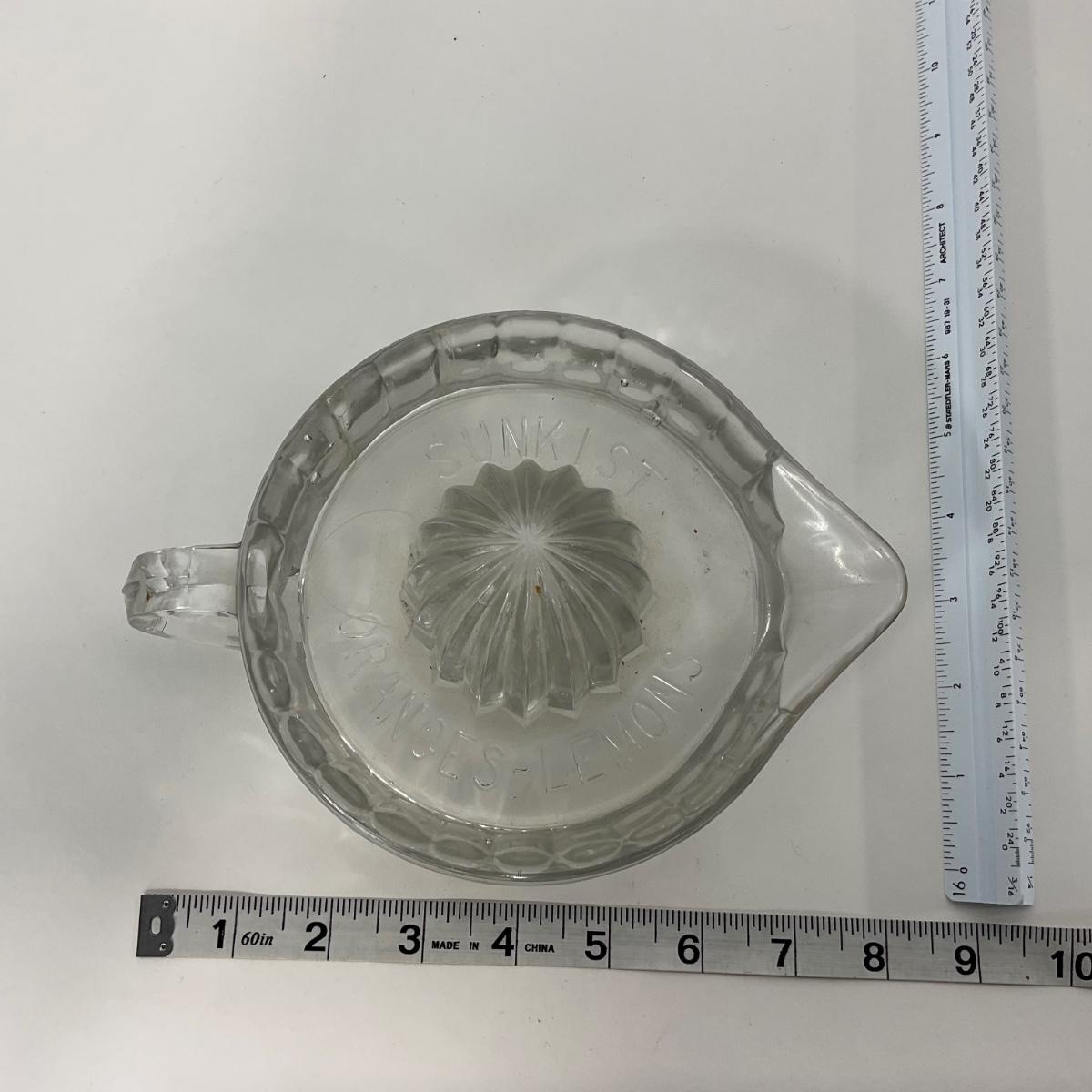 One clear glass Sunkist oranges - lemons reamer. Does have some damage. Please see photos for details and condition. ::: Shipping is available on this lot. If you require shipping you must let us know at the close of the auction. We will coordinate with you after the item has been won. Shipping fees will include insurance up to or exceeding the value of all items being mailed. If you have any questions regarding this lot please contact the auctioneer either via this website, by direct email or by phone. PICK UP TIMES and other important information can be found in the TERMS and DESCRIPTION of the auction. Please take a look for pertinent information. Thanks!