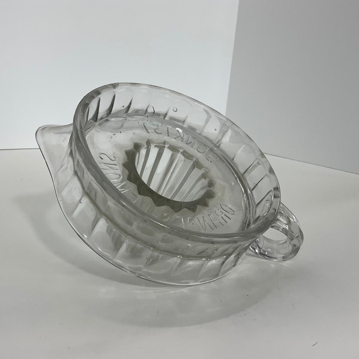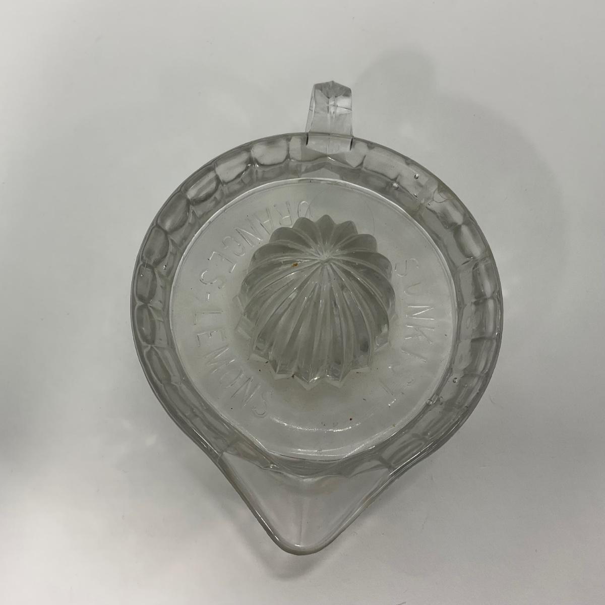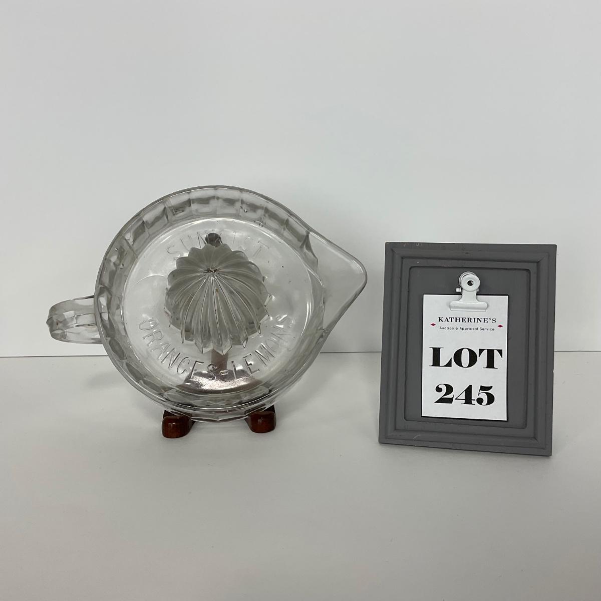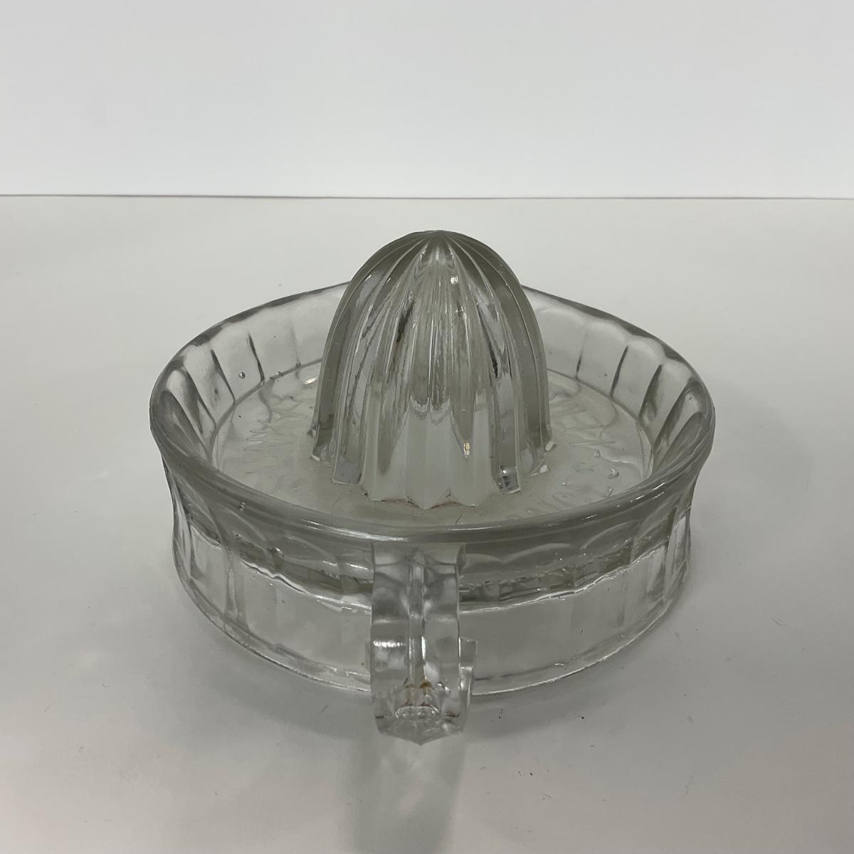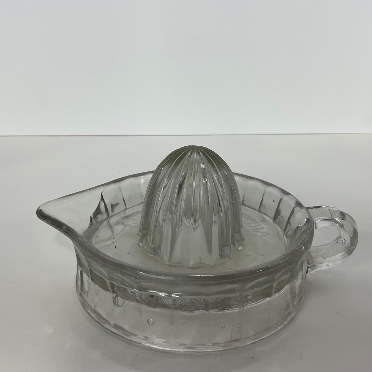 One clear glass Sunkist oranges - lemons reamer. Does have some damage. Please see photos for details and condition. ::: Shipping is available on this lot. If you require shipping you must let us know at the close of the auction. We will coordinate with you after the item has been won. Shipping fees will include insurance up to or exceeding the value of all items being mailed. If you have any questions regarding this lot please contact the auctioneer either via this website, by direct email or by phone. PICK UP TIMES and other important information can be found in the TERMS and DESCRIPTION of the auction. Please take a look for pertinent information. Thanks!