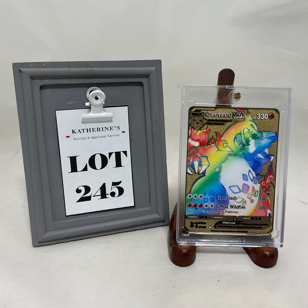 One Pokémon Gold/Metal Charizard Rainbow VMAX Card. Please see photos for details and condition. ::: Shipping is available on this lot. If you require shipping you must let us know at the close of the auction. We will coordinate with you after the item has been won. Shipping fees will include insurance up to or exceeding the value of all items being mailed. If you have any questions regarding this lot please contact the auctioneer either via this website, by direct email or by phone. PICK UP TIMES and other important information can be found in the TERMS and DESCRIPTION of the auction. Please take a look for pertinent information. Thanks!