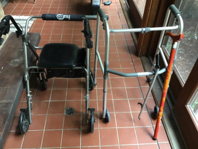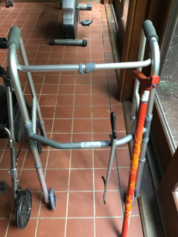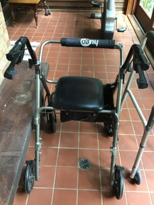 1 ) has 4 wheels, side storage bag, & hand brakes