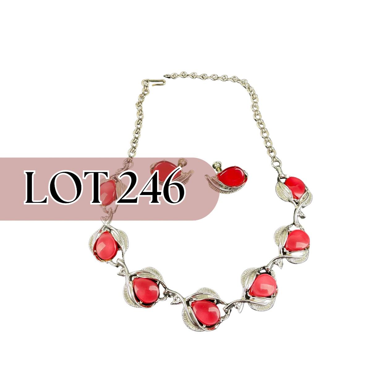 -246- COSTUME JEWELRY | Red Necklace and Earrings Set
