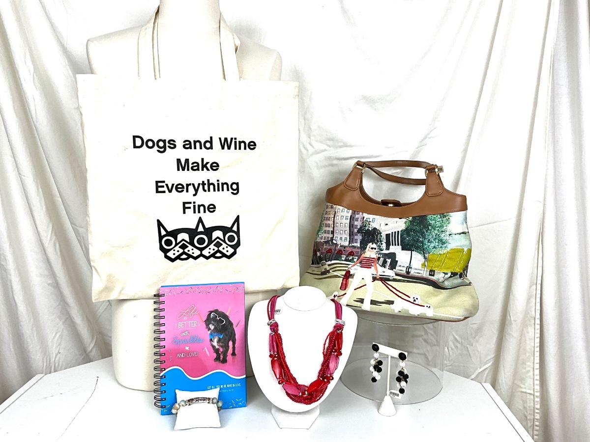 246 "For the Dogs" Tote Bag, Beaded City Bag, Planner, Bracelet, Beaded Earrings and Necklace