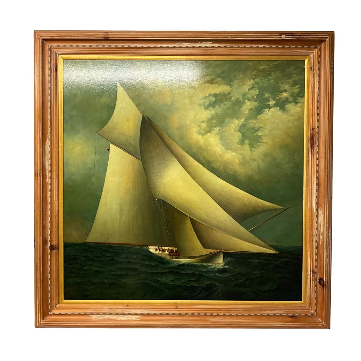 150 Large Original Oil Painting Signed Taylor Titled "Full Sail"