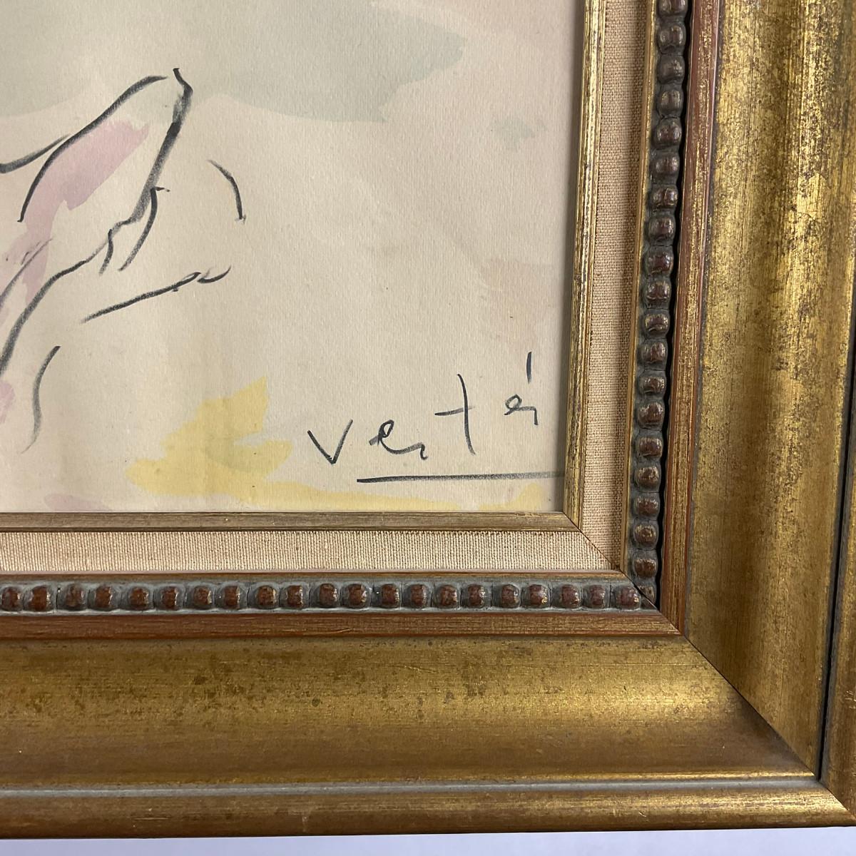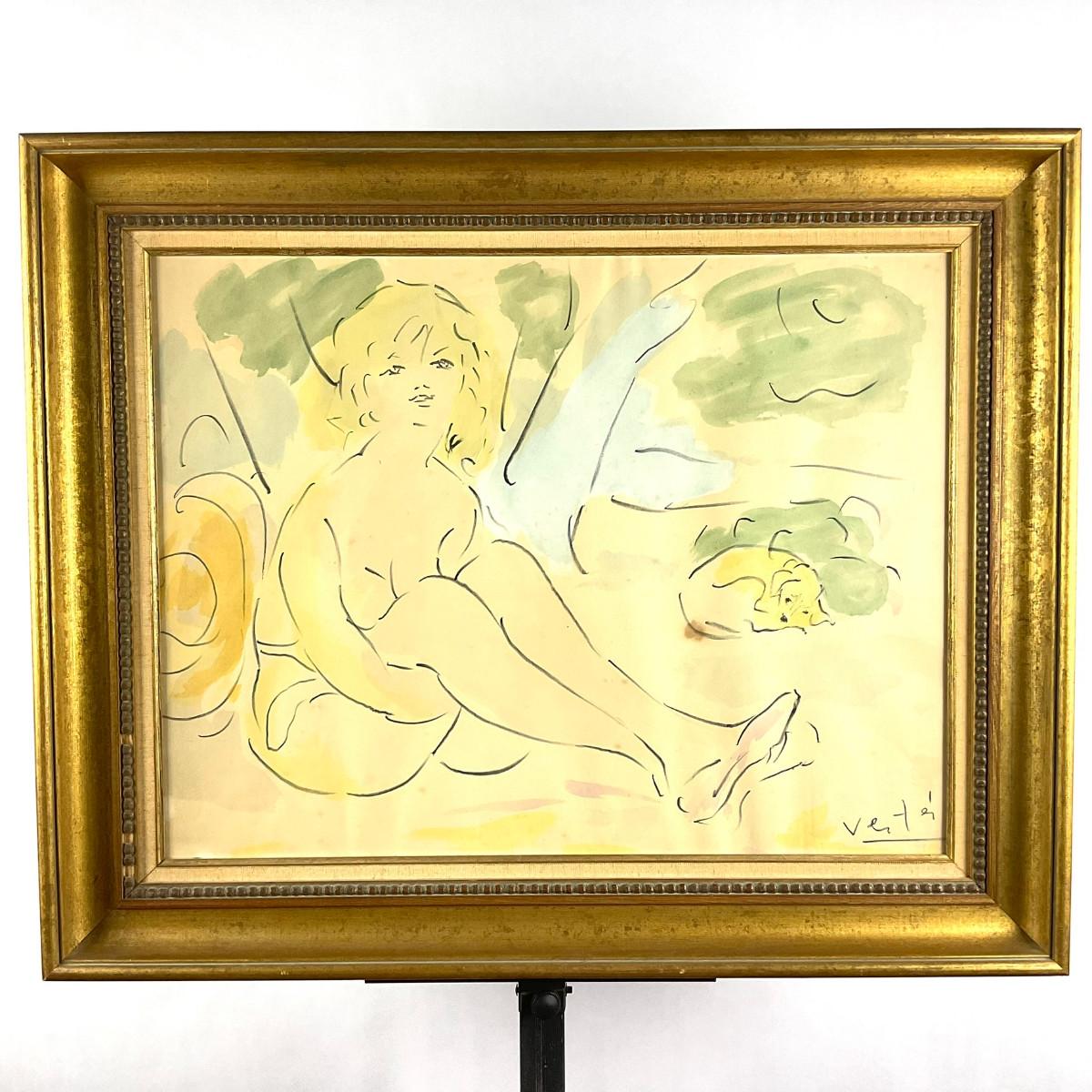 246 Original Signed Marcel Vertes (1895-1961) Water-Color Of Nude Woman With Dog